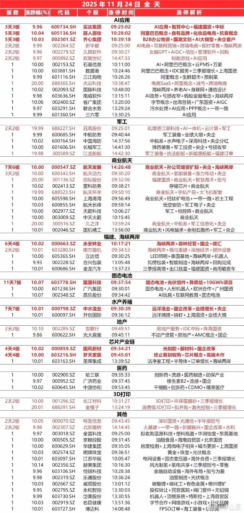 11月24日,全天封板复盘。