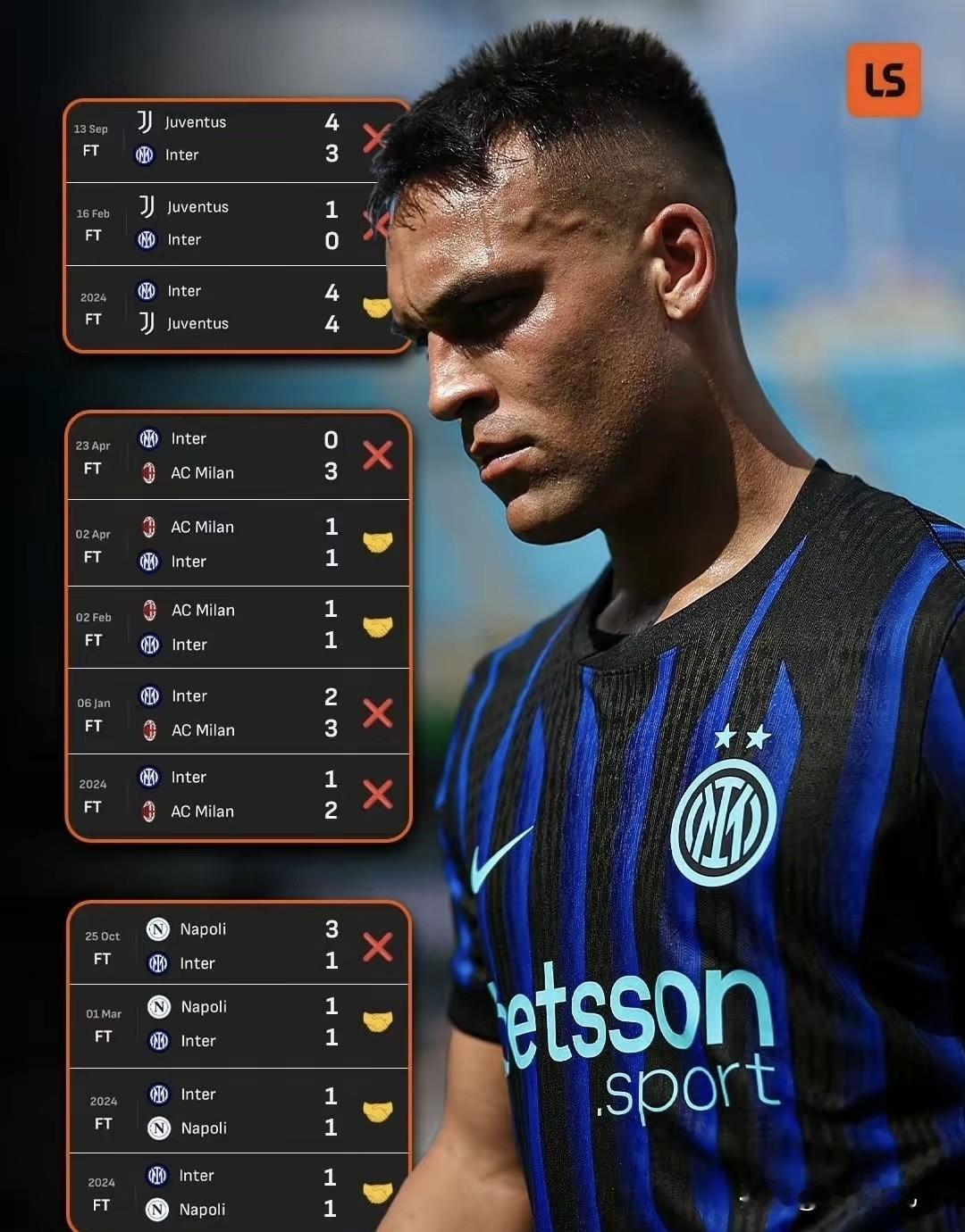怪哉,首胜何时到来?自2024年以来国际米兰在对阵AC米兰、尤文图斯和那不勒斯那支强队竟然陷入不胜怪圈,与上述三支球队的13场对决中战绩为6平7负。 遇强不胜,致使国际米兰丢失很多积分,在冠军争夺中落于下风。面对三强的首胜何时能到来呢? 是何原因造成如此局面?个人感觉一方面是球队打法缺乏变数,按部就班;另一方面是球队托大心理,认为自己实力够强,赢下不成问题;再者为球队血性缺失,拼劲不足;当然还与球队老龄化严重,多线征战消耗多,既要又要不懂取舍有关。 期待国际米兰在接下来的比赛中,能努力提升自身,为自己定制切身的目标,努力去拼。