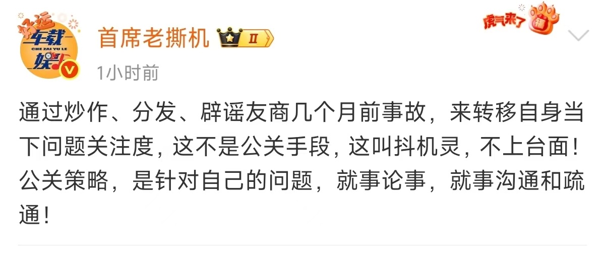 “通过炒作分发友商事故来转移自己当下问题关注度,是上不得台面的行为”我觉得说得很好