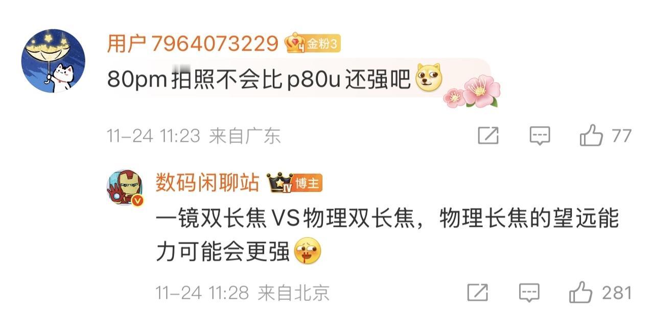 出意外了,余承东尴尬了,华为P80系用户集体被Mate80系被刺!Mate80Pro Max影像强于Pura80Ultra! 不是余总,那我们这Pura80Ultra用户算什么,小丑嘛,我当场哭晕在厕所了好吧。都说历代Mate数字机型打不过对应的P系列机型,这下倒好,数码闲聊站直接明牌了,物理双长焦比一镜双长焦更强... 那双11冲Pura80系的用户就要后悔了呀,因为不仅是主摄用了最新的LOFIC技术,动态范围超1英寸,而且物理双长焦望远更胜一筹,连长焦微距也是大提升。宣传片里展示的长焦微距视频录制,那种1920fps模式,拍摄时长0.25s,时长翻倍画质更清晰 更别提9030Pro带来的CPU和GPU提升了。CPU多核跑分能接近苹果A16,但功耗低25%。而GPU马良930提升巨大,因为架构的重塑,不论是前三年,还是未来三年,都是提升最大的一代。 然后你再寻思一下,Mate80ProMax还有内置主动散热[捂脸],全身一体成型的金属机身,集成的巴龙基带把金属机身跟信号不兼得问题也解决了,你就说提升大不大吧。早说等Mate80系出来后,再做打算,这下好了,先买pura80系的被Mate80实力背刺,然后又被后续大降价背刺[泪奔]...所以等明天发布会,完事儿要么抢热乎M80,要么入大降的Pura80系!