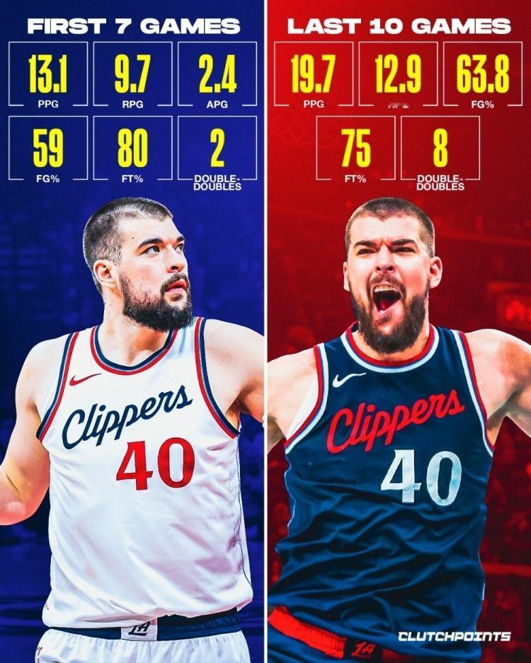祖巴茨近10战场均19.7分12.9板,命中率63.8%