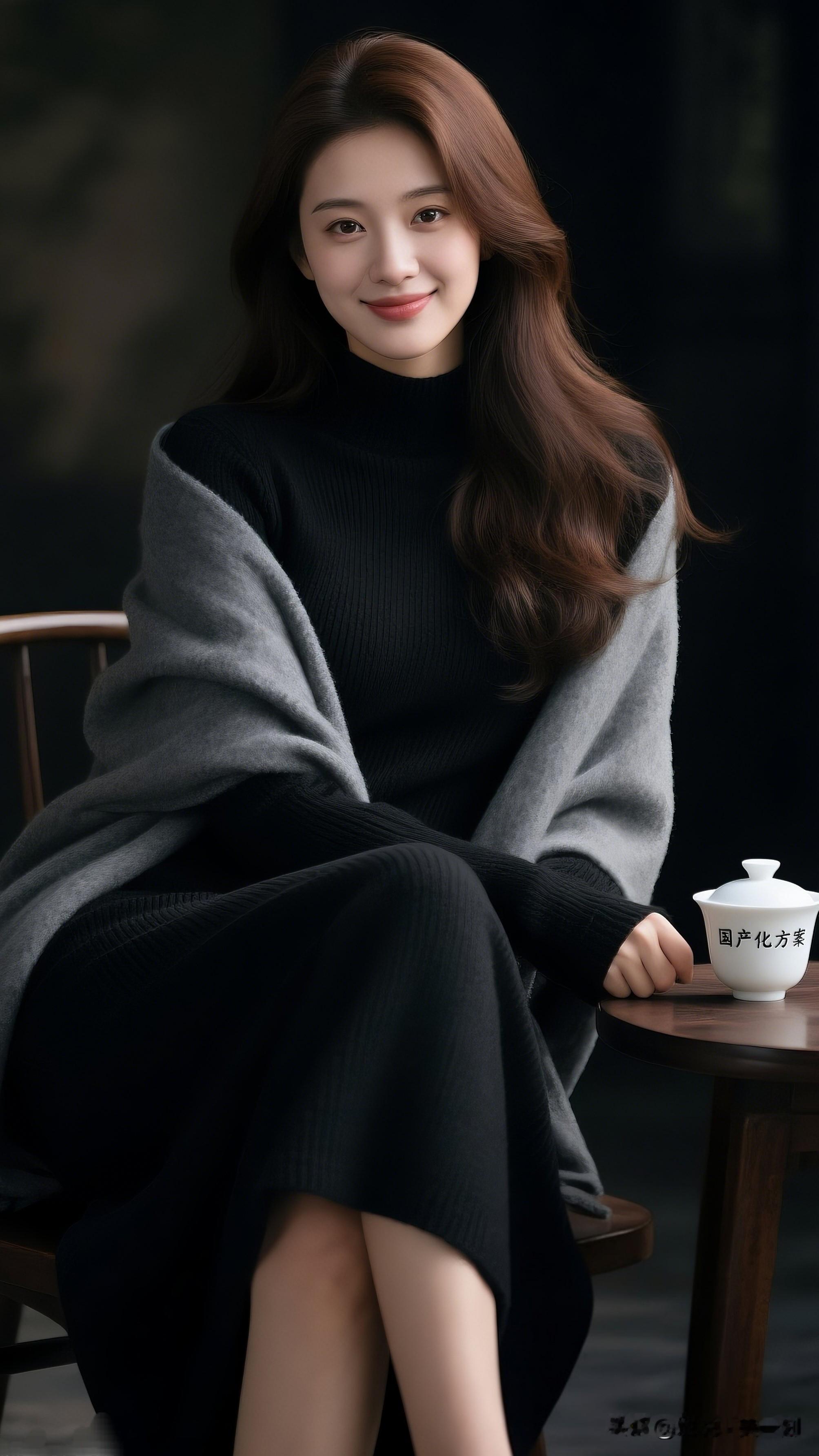 茶香满袖,岁月静好。如何把美女拍的更有创意 优雅黑裙搭配灰色毛衣,茶香四溢的午后时光。