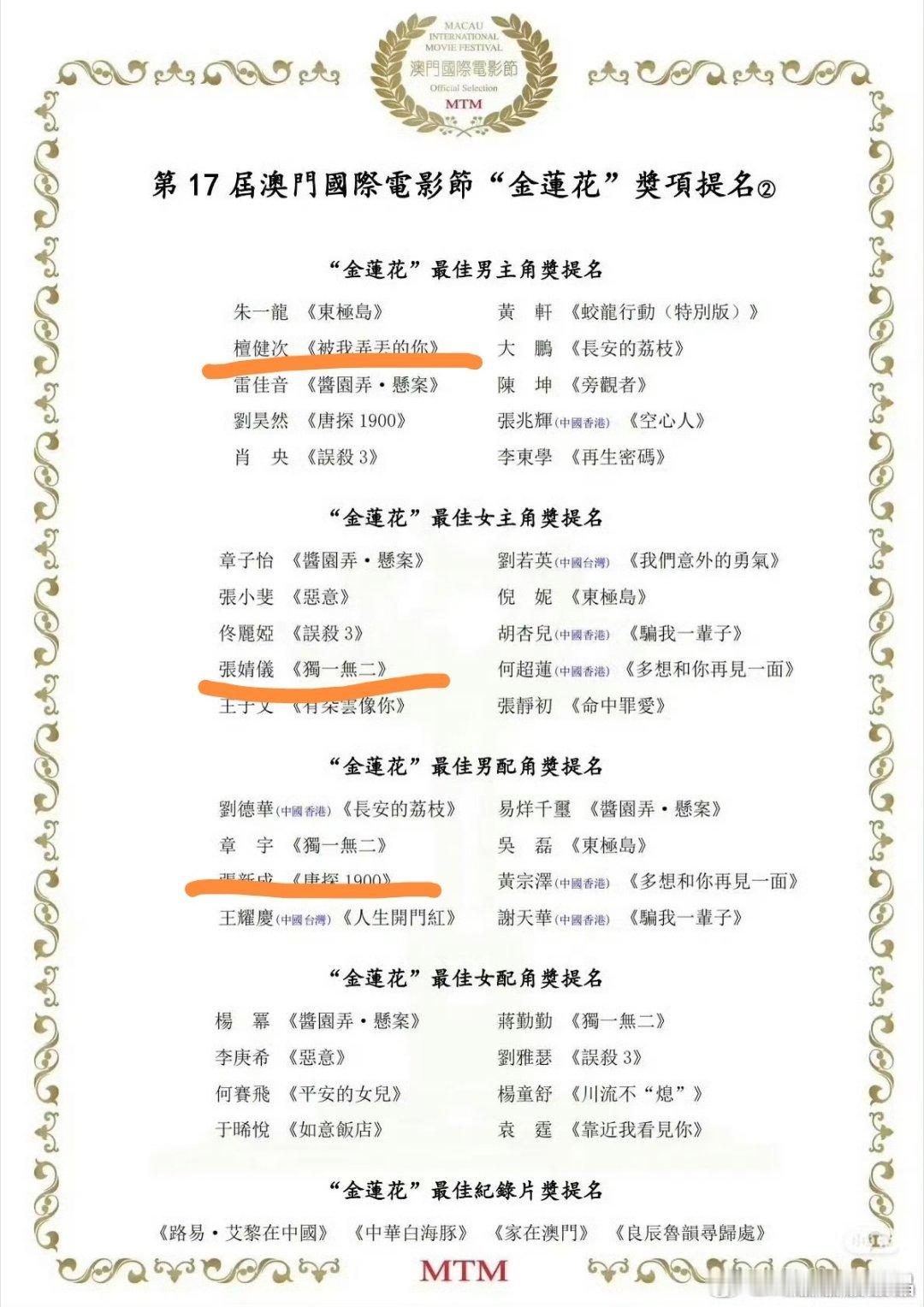 这次有三个演员获得两个提名,檀健次、张新成和张婧怡都有电视和电影两边的提名,影视双赢!