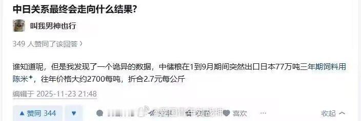 据说日本农协之前从中国进口低价米,包装成日本米,翻几倍价格卖给日本老百姓。有网友还发现,今年1~9月日本从我们进口了77万吨饲料用陈米。不知道日本农协拿这些饲料米干啥用了