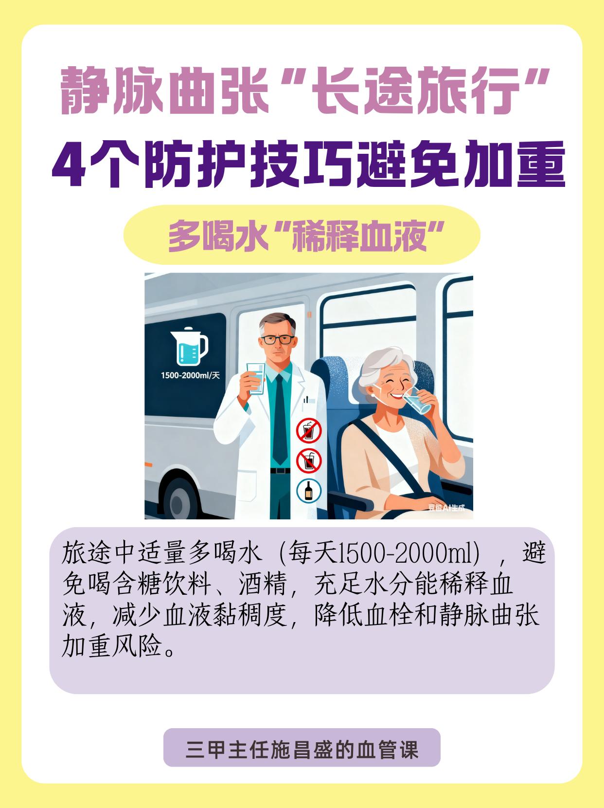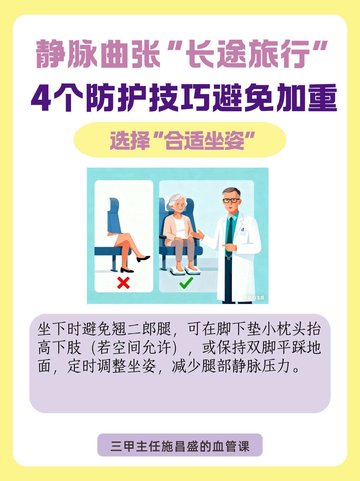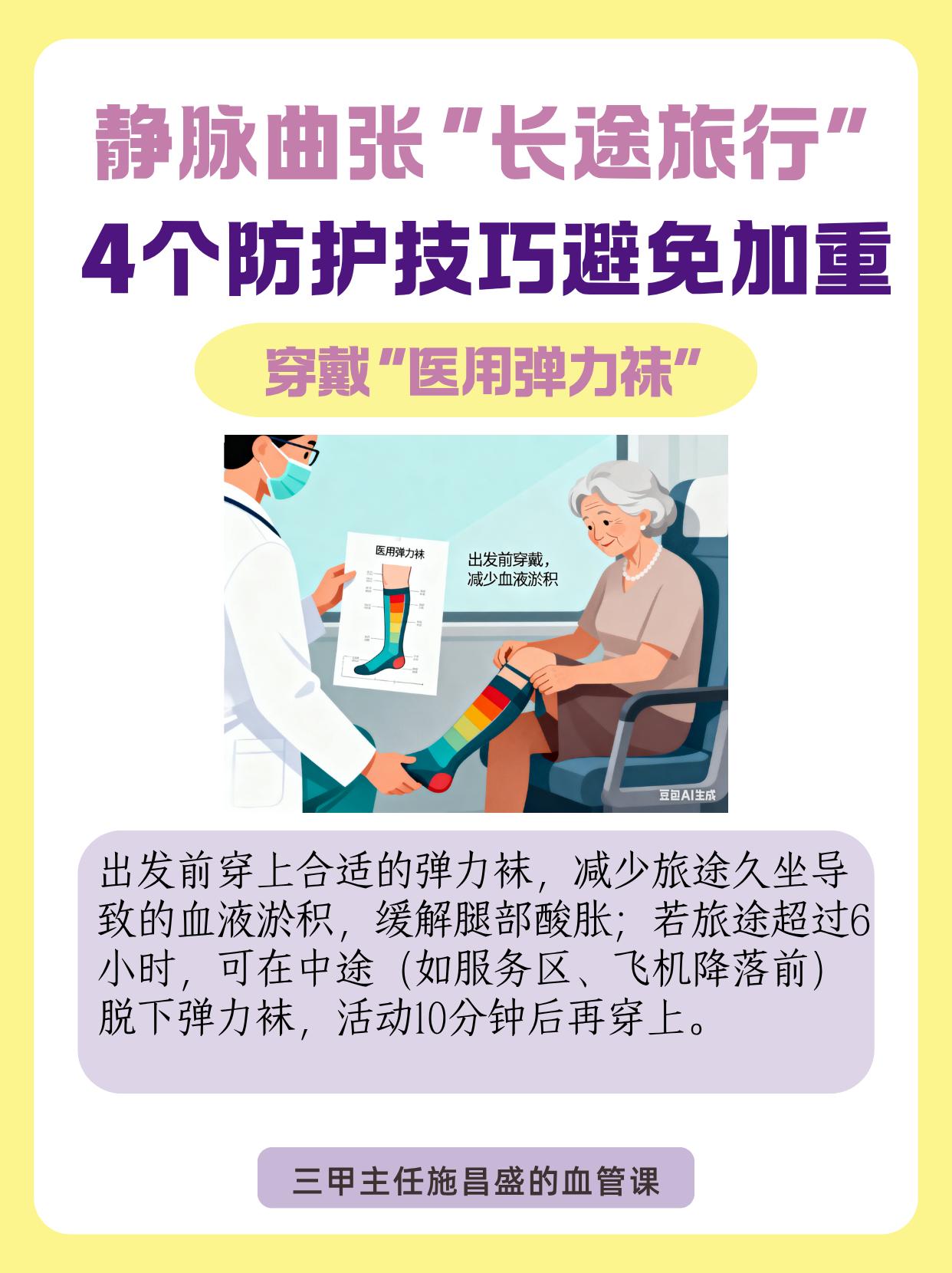 “长途旅行”:4个防护技巧避免加重。长途乘车、坐飞机时,久坐易加重静脉曲张,可做好这4个防护。