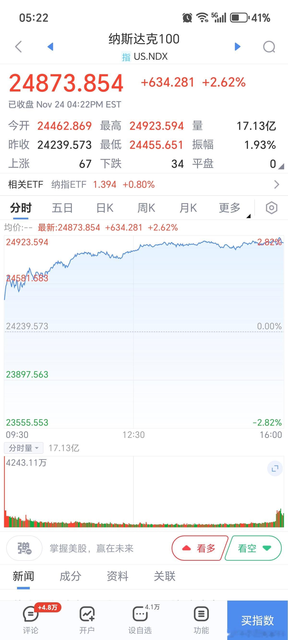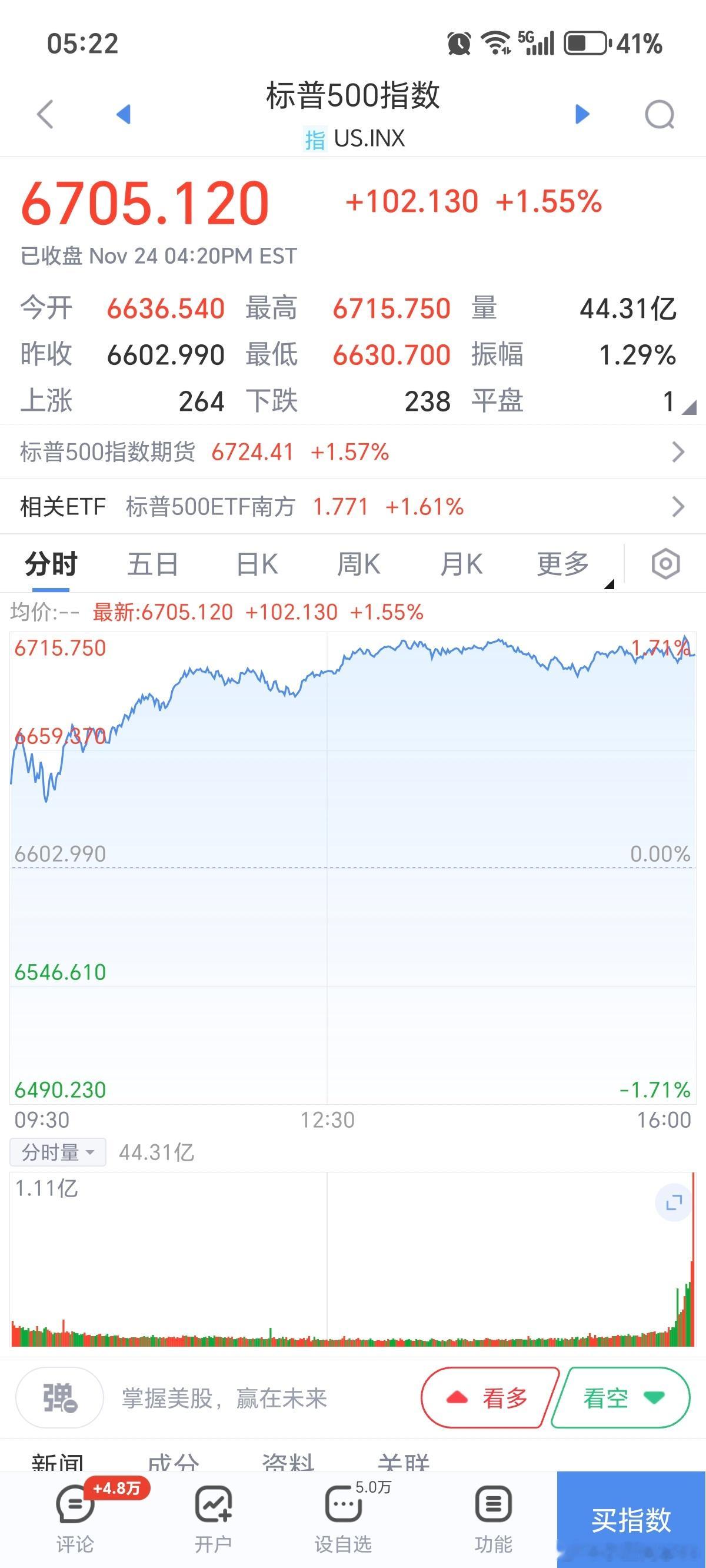 早上好,家人们起床啦,有空点赞互动,就当养铁粉/金粉/钻粉。美股暴涨,黄金大涨,A股期货大涨,今天要要高开了,起飞了??标普500:+1.55纳指100:+2.62生物科技:+1.46油气:+0.84原油:+1.53