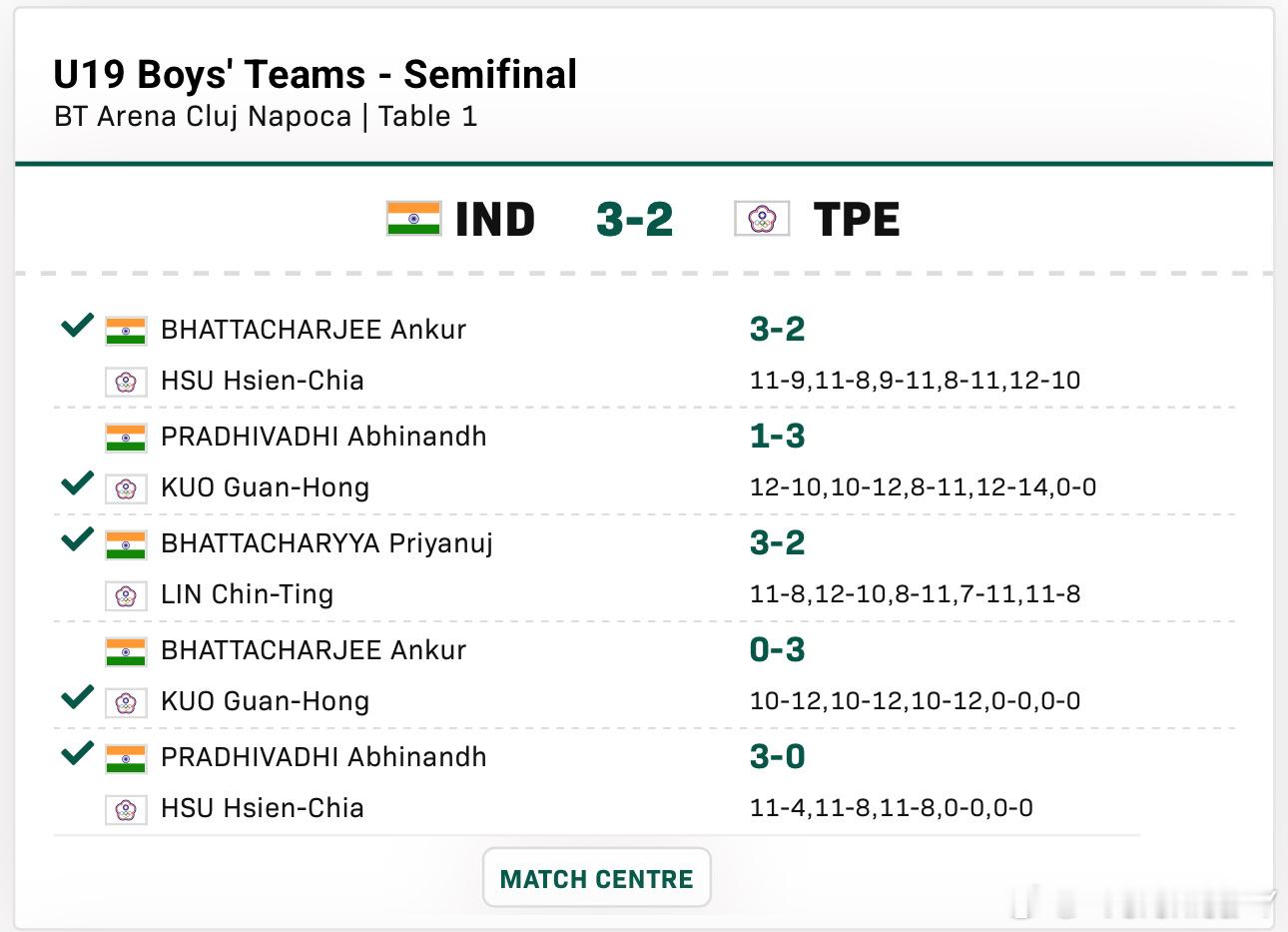 这可真是一山更比一山高我以为中国台北要剑指冠军了没想到印度3-2中国台北