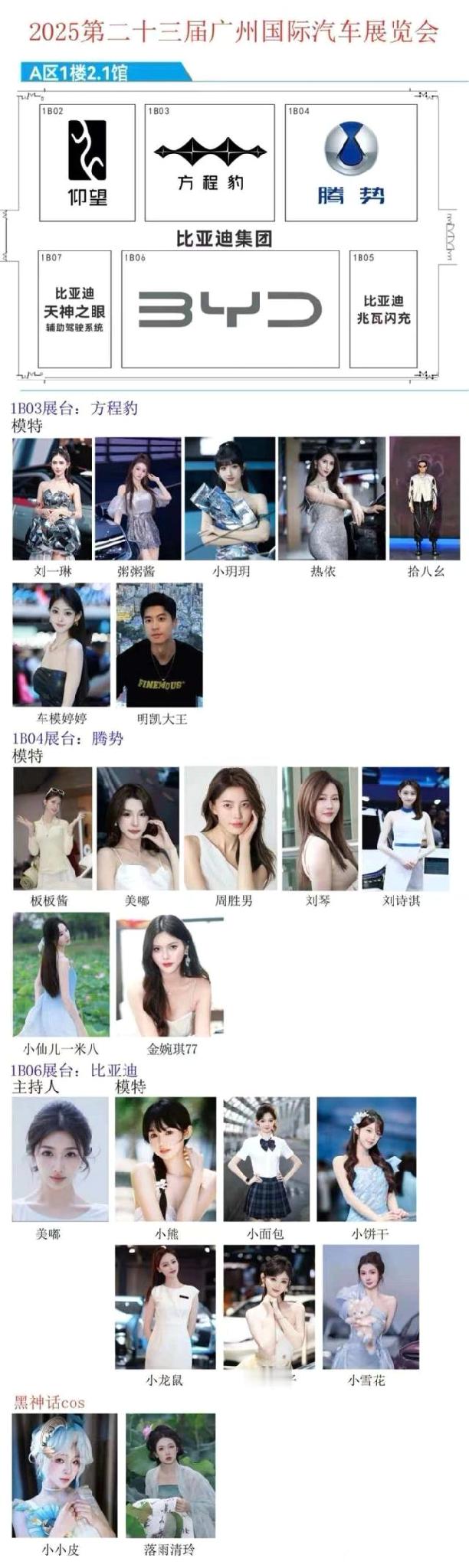 比亚迪广州车展模特列表,老登不懂审美,但老登懂美女。 你最喜欢那个车模?