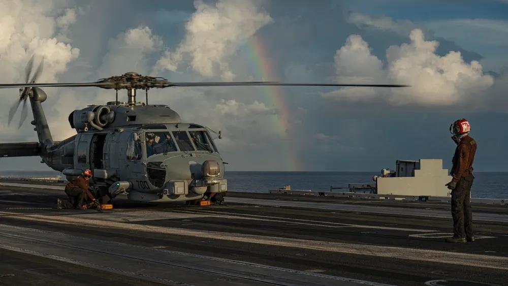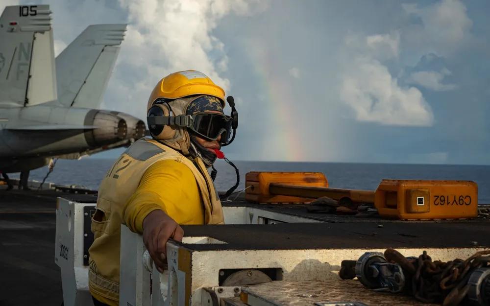 有人说中美航母已经没有差别,某些程度中国还领先,只是熟练程度细微之差。 2025年8月22日,美国尼米兹级航空母舰乔治·华盛顿号(CVN 73)正在菲律宾海航行。乔治·华盛顿号是美国海军的主要前沿部署航空母舰,与盟友和伙伴在美国海军最大的编号舰队中协同作战。