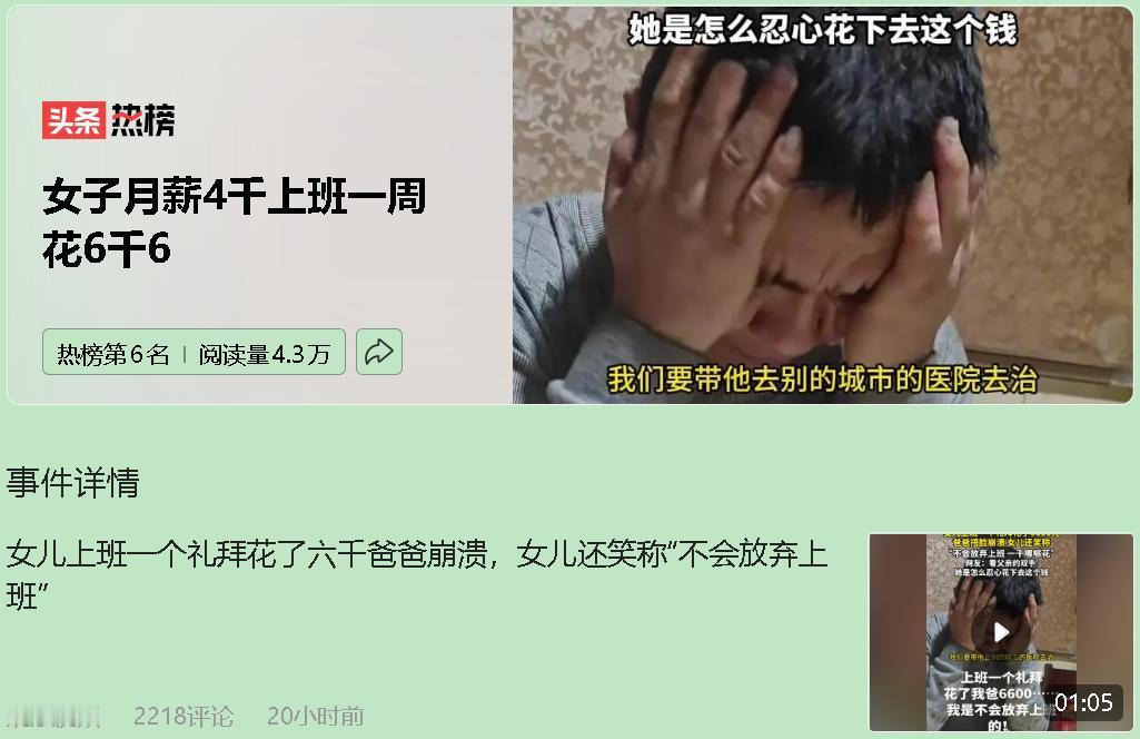 看着工资条上还没捂热的数字,再瞄到女儿七天刷掉六千的账单,这位老爸血压瞬间飙升。可女儿却笑嘻嘻说:“我才上班一周,总不能全存起来吧?” 这场无数家庭上演的消费战争,哪是什么对错问题?分明是两套生存逻辑的碰撞。 父辈那代,安全感来自银行卡余额。省下一分,未来就安稳一分。可年轻人活在另一个世界——月入过万在大城市也不经花,五千只是温饱线。他们花钱买的不只是东西,更是社交入场券、疲惫生活的解药。 那六千元里,有上班必备的行头,有和同事拉拢关系的聚餐,或许还有让自己坚持下去的小确幸。 老爸生气,表面是心疼钱,其实是怕女儿将来吃苦。女儿坚持的,也不是挥霍的权利,而是对自己人生的那点掌控感。 说白了,没人真错。老一辈的节俭是刻进骨子里的生存智慧,年轻人的消费则是这个时代的生存技能。 现在我懂了——可以买贵的,但不能买贵了。把钱花在刀刃上,也让父母看见哪些消费真正值。两代人的关心从来不同步,但那份爱心,始终都在。