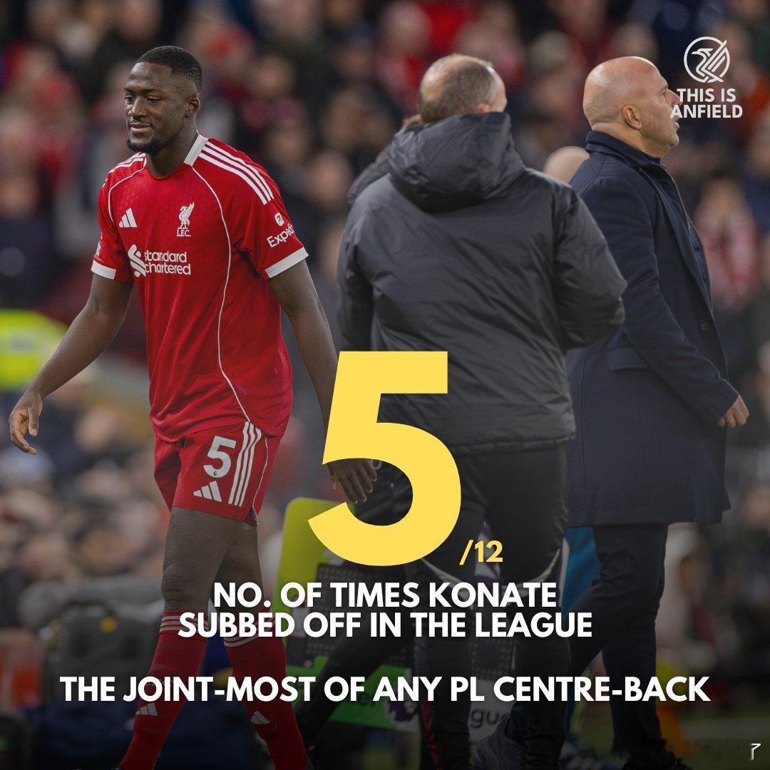 科纳特在本赛季联赛出场中有41.6%的场次被替换下场。在英超所有后卫中并列最多的后卫