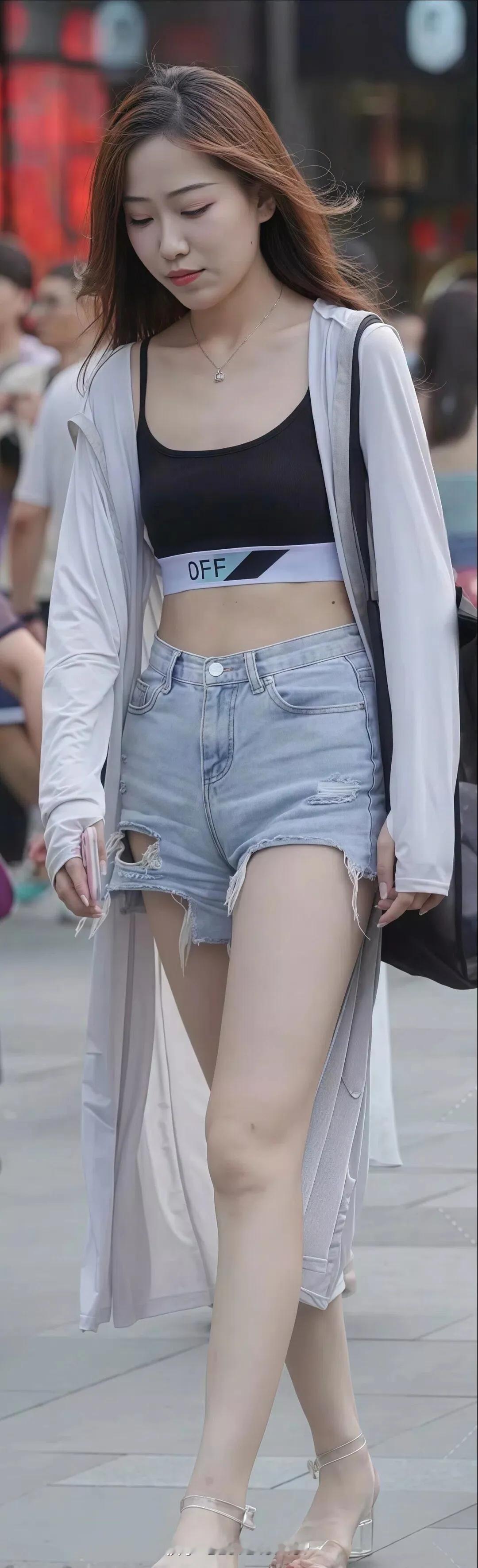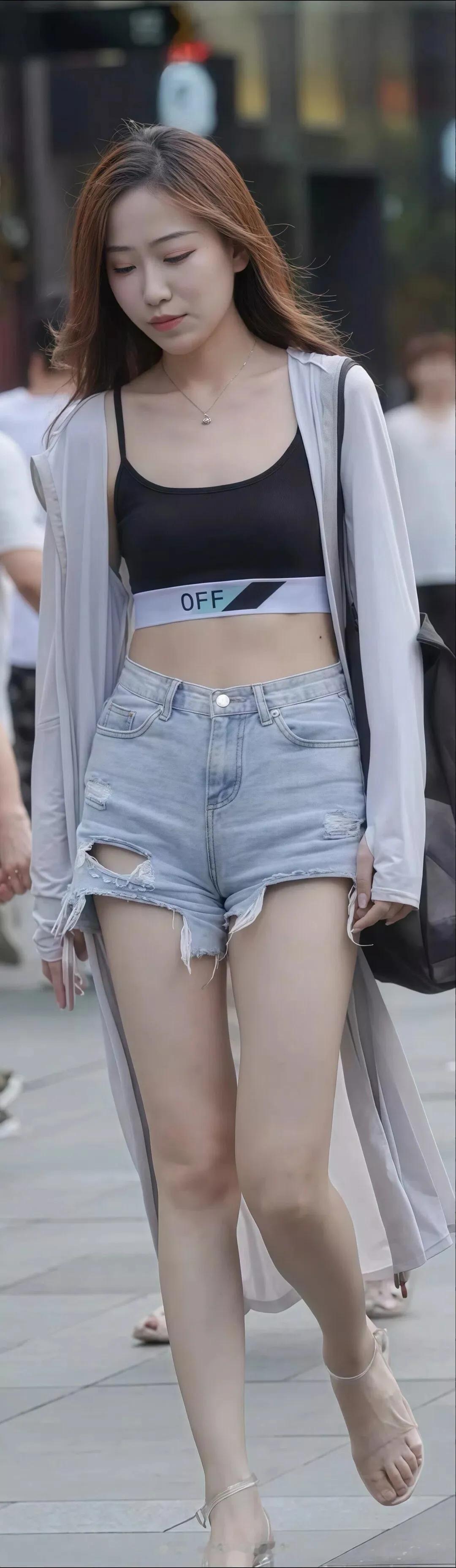 街拍美女热裤