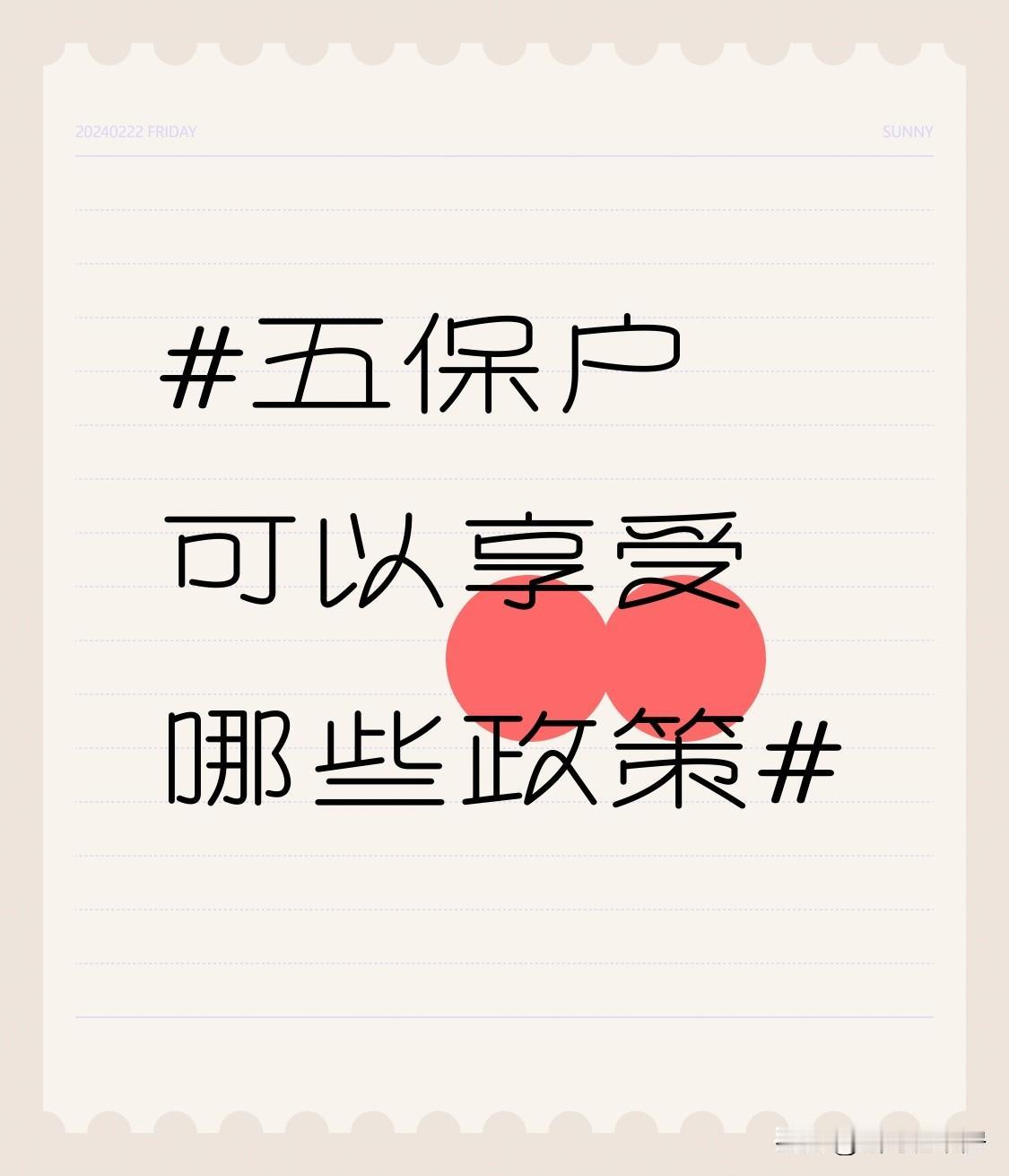 现在没“五保户”说法了,过去的五保户归为“特困人员救助供养”。他们能享受不少政策呢。医疗上,住院费用可报销90%以上,特困人员更是“零负担”。住房方面,国家免费提供住房,承担建设费用,特困人员住房补贴也更多。 生活保障上,每月能领生活补助,金额因地区而异,有的能月拿近3000,有的才几百。民政部门还会免费提供季节性衣物、被褥等必需品。另外,特困人员是全额保障加护理费。丧葬上,去世后国家会出资提供丧葬服务,承担安葬费用。