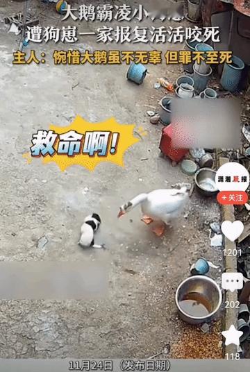 这就是霸凌者的下场!大鹅啄了几下狗外,却想不到大难临头。 近日,周口。 周女士家里的大鹅因为太嚣张,欺负一只刚会走路的小狗崽,它用坚硬的嘴把狗仔按翻在地,还啄了几下。 疼得小狗崽嗷嗷叫。 正当大鹅折磨小狗崽时,突然狗仔的家人一哄而上。 狗崽的妈妈,哥哥,姐姐奔跑过来,围着大鹅就是一场撕咬。 可怜的大鹅难挡这么多狗的袭击,不久便到底身亡。 狗崽应该很庆幸,自己的家人非常团结,能一致对外保护自己。 周女士看到这一幕感慨说,大鹅虽然做事不地道,但也罪不至死。 这让我感觉到周女士还是太善良了,小狗崽家人如果不把大鹅干趴下,它下次还会来欺负小狗崽的。 这下好了,除掉了一个隐患,小狗崽可以自由活动,不再担惊受怕了! 让我想到了如今的小日本,他们仗着有美国撑腰,大放厥词,跟中国动武,简直不要太狂妄。 就长这只不知天高地厚的大鹅,再狂妄下去,接下来就是死路一条。