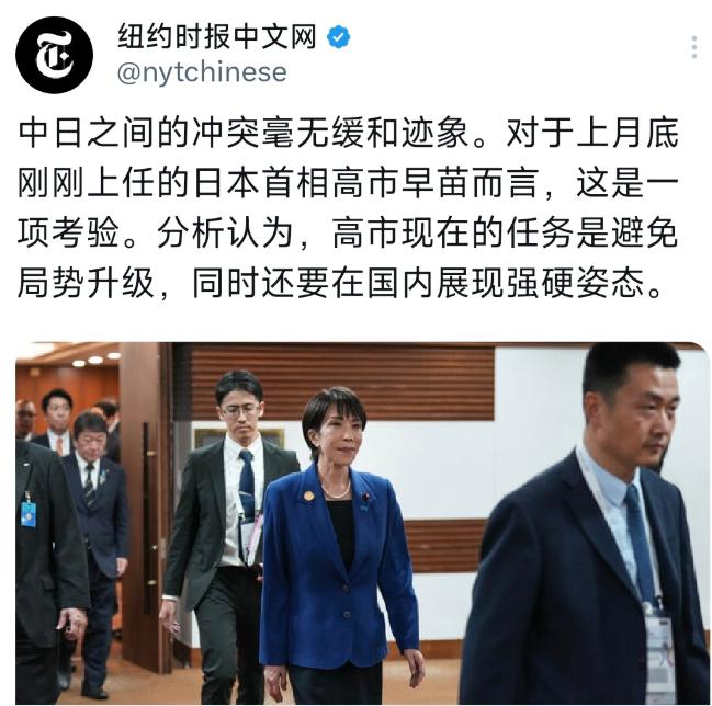 高市早苗的尴尬,被《纽约时报》点破了。《纽约时报》11月24日发文说:“中日之间的冲突毫无缓和迹象。对于上月底刚刚上任的日本首相高市早苗而言,这是一项考验。分析认为,高市现在的任务是避免局势升级,同时还要在国内展现强硬姿态。” 近几周来,中日之间的外交对话已基本陷入停滞,曾经作为沟通桥梁的各类磋商机制暂时失灵,而历史问题则成为双方互相指责的核心议题,每一次表态都在加剧彼此的对立情绪,让本就紧张的双边氛围雪上加霜。 局势的严峻性,不仅体现在双边互动的停滞,更聚焦于日本新首相高市早苗的特殊处境。 作为日本右翼势力的核心代表人物,高市早苗在上月底走马上任伊始,便迎面撞上了中日关系的“寒流”,这无疑是对她政治能力的重大考验。 她面临的是一道几乎无解的双重难题:一边要竭力避免中日局势滑向更危险的境地,防止双边冲突进一步升级给日本带来不可预估的损失; 另一边又必须向国内右翼势力摆出强硬姿态,以此换取政治支持、稳固自身的执政根基。 这两种诉求从本质上就存在不可调和的矛盾,没有任何现实路径能够让两者兼顾,这种逻辑上的对立,注定了她的执政之路从一开始就布满荆棘。 追溯这场局势升级的根源,并非偶然的摩擦,而是高市早苗自身言行埋下的隐患。 上任前后,她多次口不择言,发表了一系列错误的涉台言论,这些言论严重触碰了中国的核心利益红线,伤害了中国人民的民族情感。 台湾问题是中国内政,任何外部势力都无权干涉,这是国际社会公认的事实,而高市早苗的相关表态,无疑是对中国主权的公然挑衅。 除了涉台问题,钓鱼岛作为中日之间的敏感议题,同样潜藏着加剧冲突的风险。 如果日本方面在钓鱼岛问题上继续采取小动作,试图挑战中国的领土主权,必然会引发双边摩擦的进一步升级。 面对这种公然挑衅,中方的态度明确且坚定,将动用多领域、多层级的组合拳对日本实施反制,捍卫国家的核心利益不受侵犯。 外人看来,高市早苗似乎始终维持着镇定的政治姿态,但明眼人不难看出,面对中国持续保持的高压态势,她的内心早已慌作一团。 中国的反制措施并非空谈,而是有着实实在在的威慑力,如同悬在她头顶的达摩克利斯之剑,随时可能斩断她妄图破坏地区和平的野心。 高市早苗推行的对华强硬政策,本质上是一种蒙蔽国内民众的短视行为,完全没有考虑到日本的实际利益。 持续的对华挑衅,只会让日本在经济和安全领域遭受双重打击——日本与中国在经济上有着深度的依存关系,双边贸易的中断或受限将直接冲击日本的产业和民生; 而在安全层面,地区局势的紧张也会让日本陷入孤立无援的境地,所谓的“强硬”最终只会把日本推向战争的边缘,让整个国家陷入万劫不复的深渊。 日本国内的态势同样充满矛盾,这种矛盾进一步放大了高市早苗的执政困境。 近期,日本的防卫预算呈现出快速上涨的趋势,显然是在配合高市早苗的右翼政策导向,但这一举措与普通民众的核心关切形成了鲜明反差。 对于日本民众而言,他们更在意的是自己的“钱袋子”,是日常生活的稳定与富足,而非所谓的军事扩张或地缘政治博弈。 持续升温的局势和偏向强硬的政策,让日本国内的不满情绪日益积累,东京街头的抗议活动逐渐增多,网络上的骂战也持续不断,整个社会陷入了紧张的氛围之中。 民众对防卫扩张的低关注度,与高市早苗的政治诉求形成了强烈反差,这种内部的撕裂,让她的执政基础愈发脆弱。 从当前的局势来看,高市早苗并未有收敛之意,反而试图进一步煽动国内民众,推动修宪进程和军事扩张计划,这无疑会让本就复杂的局势更加棘手。 她的一系列操作,不仅加剧了中日之间的对立,也让日本陷入了内外交困的境地。 如果高市早苗始终不愿收回错误言论,不愿正视中国的核心利益诉求,日本必将在中方的反制措施下遭受重大损失。 经济的衰退、民生的困境、国际社会的孤立,这些后果最终都会反噬到她自身的政治生涯中。 作为日本的首相,她本应承担起维护地区和平与国家利益的责任,却选择了一条挑衅对立的道路,这种短视的政治选择,最终只会让她自食恶果,面临难以挽回的政治后果。 中日关系的稳定,不仅关乎两国人民的根本利益,也对整个东亚地区的和平与发展有着重要意义。 高市早苗当前面临的困局,本质上是其错误政策选择的必然结果。 唯有正视历史、尊重彼此的核心利益,放弃挑衅对立的思维,才能为中日关系的缓和创造可能。 否则,等待日本的只会是更多的损失,而高市早苗也终将为自己的言行付出应有的代价。 今天的分享到这里就结束了,大家对此事有何看法,欢迎在评论区留言和讨论,感兴趣的可以点击头像加关注,我将每日更新优质内容,我们下期见。