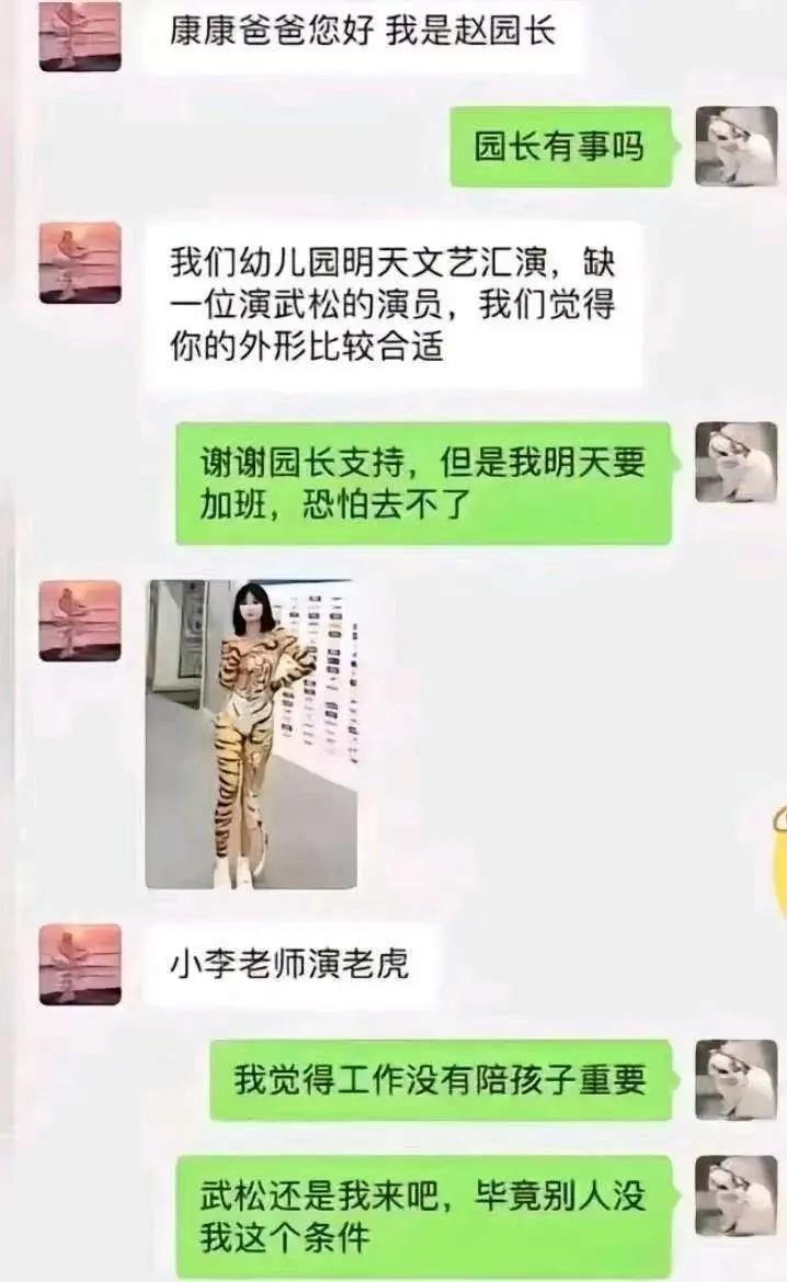 当武松有啥要求吗?第二天节目武松打虎,演绎成了武松戏虎。臆想节目顺序为,上山打虎,虎视眈眈,饿虎扑食,虎口拔牙,骑虎难下,虎踞龙盘,龙潭虎穴,最后调虎离山,好生厉害吧,武松。第二天小李老师感冒请假,由食堂烧饭李阿姨客串母老虎。