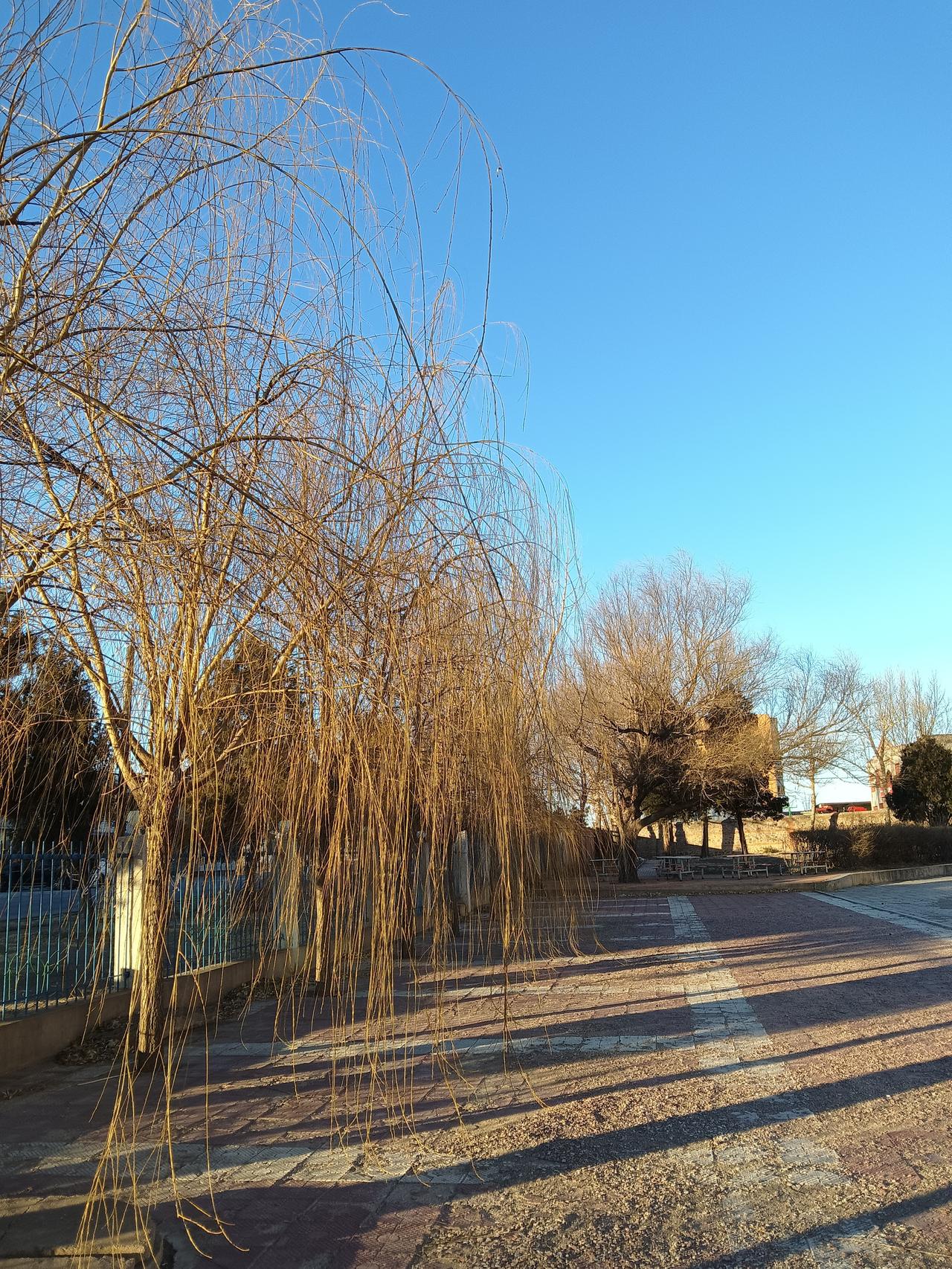 冬日暖阳下,静谧的街道与光秃的树枝交相辉映。冬日阳光随手拍 秋日氛围照片 冬日景色