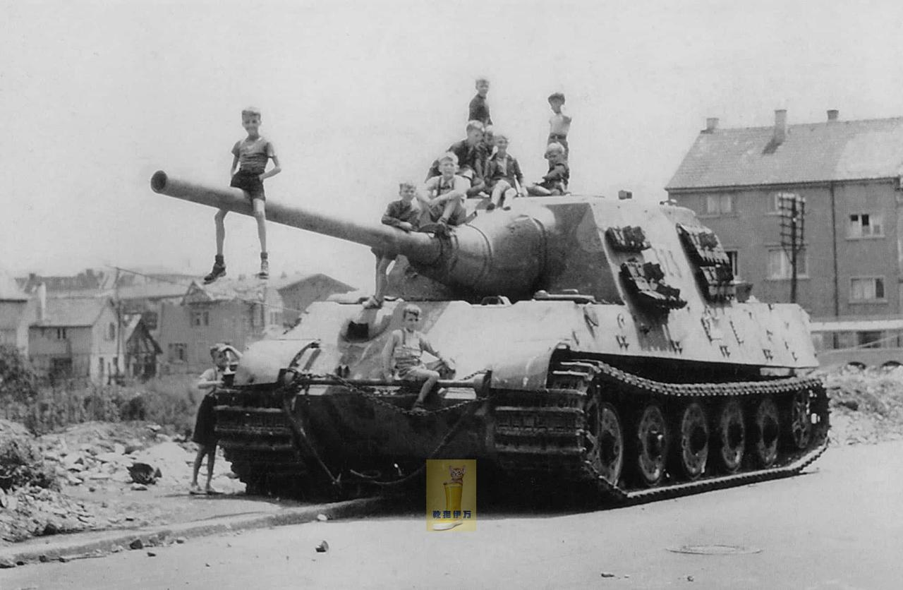 1945年4月16日,德国,鲁尔,伊瑟隆。驻防当地一个“猎虎”重型坦克歼击车营正在集结,准备进行投降前的最后一次点名。 “猎虎”是二战末期德军装备的重型坦克歼击车,全重达70余吨,配备128毫米反坦克炮,是二战中投入实战的最重装甲战斗车辆。其所属单位“营”通常为德军装甲部队的独立作战编制。 伊瑟隆是位于德国鲁尔工业区东部的城市。1945年4月,此地正处于美军攻势的包围圈内,是鲁尔战役结束前德军残部的重要集结地之一。 尽管“猎虎”威力巨大,但此时德军已丧失制空权,而且后勤油尽灯枯,严重缺乏燃料和弹药,许多精锐单位最终只能选择弃车而逃或者不战而降。大家注意图3~4,可以直观地看出其车体非常高大。