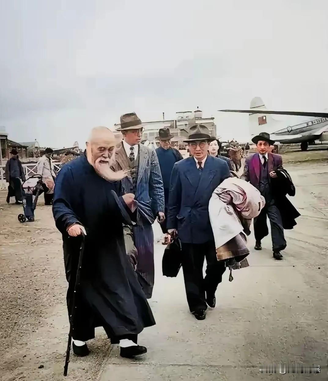 走在前面这个穿着长衫、拄着拐棍、须发皆白的老者,就是大名鼎鼎的书法家于右任先生,于先生的草书写的非常好,以前曾经看过他的作品,也学习过他的作品,他的作品被称之为标准草书,比我们现在有些书法家的草书写的好多了,于先生才是真正的草书大家,目前能够超过他水平的人,好像是寥寥无几,甚至是没有!