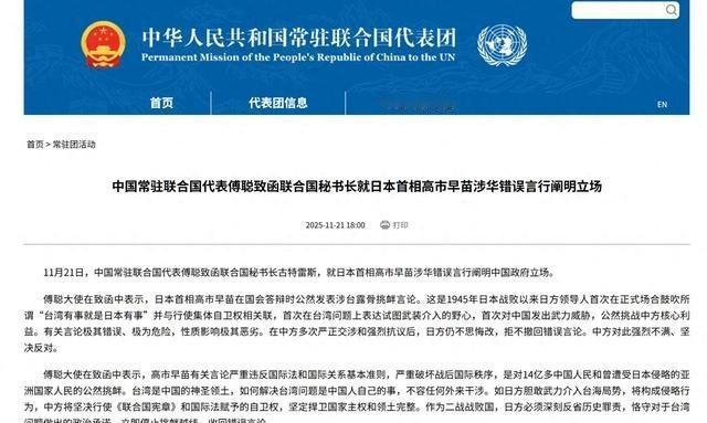 和日本的事情已经快20天了,看来收回言论是不可能的了,虽然官方一次次通过各种场合强硬发声,军方除了发声更是直接实弹演习了,各种奉劝、谴责、警告都用了,但是看看日方好像比我们还强硬,它们根本没把咱们当回事! 这事儿从11月7号开始闹到现在,已经快20天了,日本首相高市早苗在那天国会答询时,直接把台湾问题拉进日本的所谓存立危机框架,说如果大陆出动军舰用武力,那可能触发日本集体自卫权。这话一出口,就跟扔了个炸弹似的,中方立刻跳起来回应。外交部副部长孙卫东13号就召见日本大使金杉宪治,提出严正交涉,说这是粗暴干涉内政。高市那边呢,10号在预算委员会上先是试着降温,说那是假设性回答,以后避免具体表述,可转头又强调符合政府一贯立场,死活不撤回。18号又重申一次,日本外务省还派人来华解释,但中方直接回绝,说红线碰不得。这态度摆明了,日本不光没当回事,还觉得有美国撑腰就能硬扛。 中方这边的回应可不是光说不练,从外交到军事,全线出击。外交部发言人毛宁16号在X上用中英日三语发四张海报,直引用1972年中日联合声明,提醒日本无论谁上台,都得承认台湾是中国领土一部分。21号,常驻联合国代表傅聪直接给联合国秘书长写信,正式文件里谴责高市言论违反 国际法,强调台湾是中国内政,日方若武力介入就是侵略,中方有自卫权反击,还点名援引联合国宪章的敌国条款。那条款是二战后反法西斯国家给德意日这些战败国下的紧箍咒,说如果它们再搞侵略,中英法苏美这些创始国能直接动手,不用安理会批准。中国驻日大使馆同天也双语发帖重申这点,日本外务省嘴上说条款过时,可到现在也没正式废除,国际上谁都知道,这东西还在宪章里挂着呢。王毅外长在中亚访问时接受采访,直言如果日方一意孤行,一切正义国家都有权对日本历史罪行再清算。这话重磅,等于把历史账本又翻开,提醒日本别忘了当年侵略亚洲的旧账。 军方这边更直接,东部战区、中部战区、西部战区几乎同时发声,视频和声明全指向日本。东部战区说保持警惕,随时准备;中部战区直言武器上膛,谁越线就还击;西部战区宣传片里士兵列队,枪栓拉动声清脆。11月15号,黄海海域实弹射击拉开帷幕,舰艇编队破浪,炮弹落点精准,演习延长到19号结束,覆盖中部部分海域,全天候不间断。这地方敏感,黄海直面日本方向,还是海上自卫队去台海的必经路,中方这回演习等于堵门,警告别轻举妄动。《解放军报》16号刊文,说日本若介入台海,日本全国都可能成战场,打击目标不光海上自卫队,还包括本土军事基地和军工设施。日方呢,海上自卫队也来事,派舰艇在附近海域活动,还发视频秀肌肉,可中方海警1307舰艇编队16号就去钓鱼岛领海巡航,回应得快准狠。 国际上反应也热闹,韩国20号取消中日韩文化部长会议,说高市言论破坏合作氛围。俄罗斯外交部发言人扎哈罗娃斥责日本该反省二战教训,泰国前副总理披尼公开反对高市行为。台湾地区那边,国民党前领导人马英九批评高市躁进,担心把台湾拖进险境;民进党当局领导人赖清德倒打一耙,说大陆制造麻烦,但岛内媒体像《联合报》直批高市加速日本右转,玩火自焚。美国驻日大使发帖支持日美同盟,可没提具体援助,国务院声明也只泛泛谈安保条约,特朗普那边甚至批评高市冒险,没给实打实背书。日本国内更乱,前首相鸠山由纪夫、石破茂、野田佳彦轮番上阵,说高市轻率,言论越界,加剧日中紧张。社会民主党发文,说高市存在本身就是日本危机,民间团体上百人集会抗议。民调显示高市内阁支持率虽有75%多,但年轻人里也开始下滑,经济界担心旅游警示影响中国游客,2025年前9个月中国大陆访日749万人次,占整体24%,现在航班取消,供应链调整,企业头疼替代供应商。 说到底,这事儿考验的不光是中日底线,还牵扯战后秩序。高市言论公然挑战开罗宣言、波茨坦公告、中日四个政治文件,一个中国原则明明白白写着,日本无权插手台湾。敌国条款还在,那是为防日本军国主义复燃的保险,日本修安保法、扩集体自卫权,本来就踩线,现在高市直接放大解释边界,等于是给自己挖坑。国际专家说,这不孤立,是日本右翼长期扩张的延续,2025年抗战胜利80周年,日本却鼓吹台湾有事,等于无视历史教训。中方反制严谨,从法理到军事,全覆盖,就是要让日本明白,碰核心利益,没商量余地。