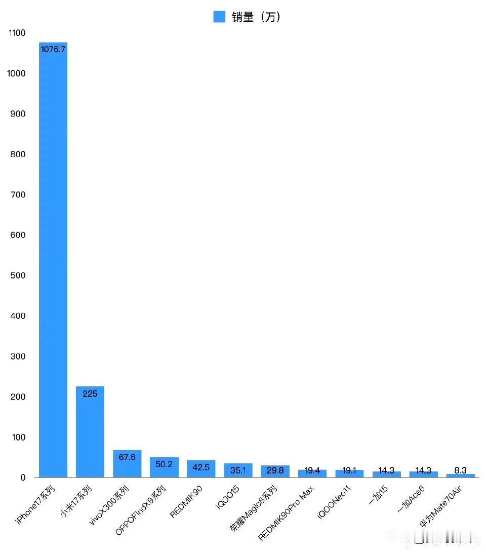 更直观的销量对比!iPhone17系列犹如一座大山[捂脸]轻轻松松突破一千万销量,后面的国产旗舰机加起来也望尘莫及,不过国产旗舰销量对比自己就行了,配置对比iPhone超越iPhone都没啥问题,销量只要对比上一代有进步就行[思考]想要超过iPhone销量还是太难了...