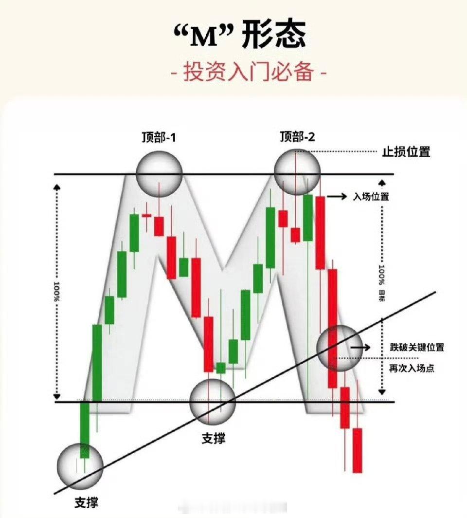 M顶与W底是技术分析中经典的趋势反转形态,其信号逻辑与交易指导意义尤为明确。M顶的形成标志着原有上涨趋势的终结,双顶高点构成阶段性价格锚点,后续行情大概率进入调整或反转周期;W底则意味着下跌动能衰竭,双底低点形成阶段性支撑,趋势即将迎来修复性反弹。对于W底形态,颈线突破是核心入场信号:当价格有效站上颈线位置,预示上涨空间正式打开,理论目标位通常等于双底低点到颈线的垂直距离。此时可在突破瞬间果断建仓,同时将止损设置于颈线下方(或双底低点附近),以控制风险、锁定潜在收益。