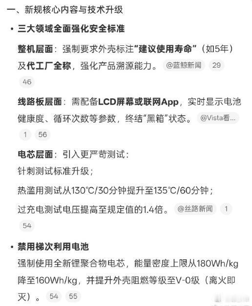 有人说这是“巧立名目”,又想变着花样收钱了。但是我觉得,这是一个很重要的事情,充电宝这种东西,人人都会用,人人都要带,保有量是很大的,安全性才需要更加重视。新规在整机、线路板、电芯这3大技术上,提出了几十项的严苛改进,为的就是安全。咱就是说,大家已经被新能源车电池起火的事情折磨这么久了,充电宝的安全真不该被忽视。谁都不希望哪个高铁、航班上出现充电宝起火吧?符合新规的充电宝可能价格更贵,但相对来说也只是一笔小钱,却可以让整体大环境更加安全,怎么看都是很值当的吧?