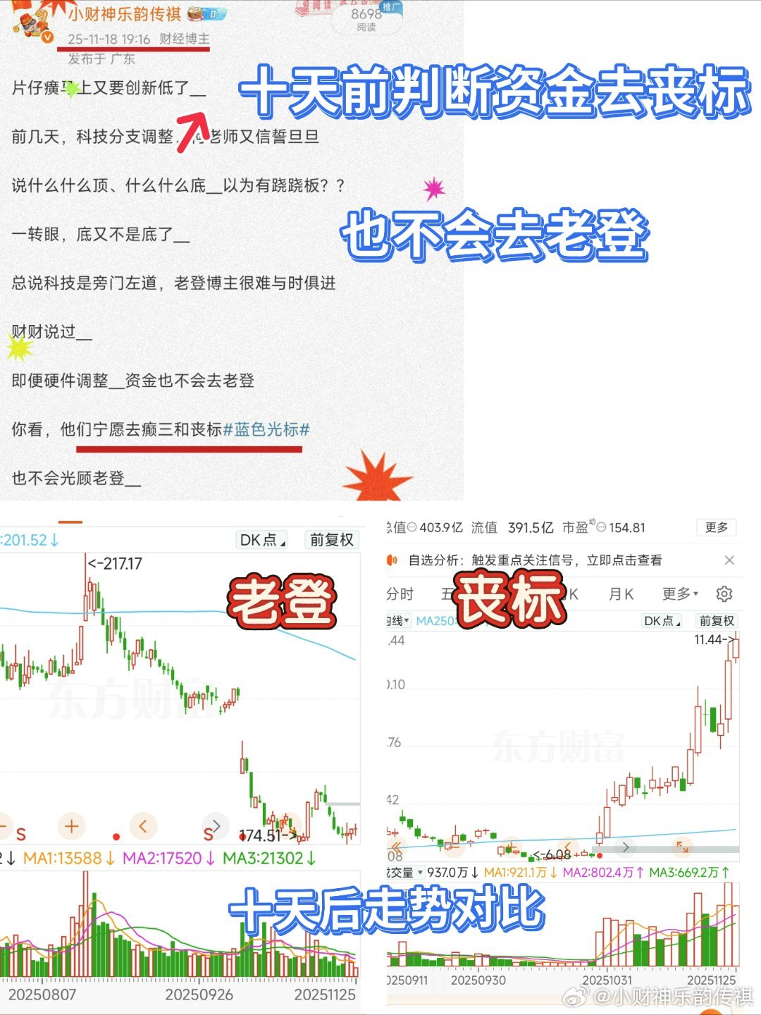 大约10天前_成长股调整_老登博主就在幻想资金会去传统蓝筹并再次吐槽小登们判断资金会回流去片仔癀等等财财当时就说_他们宁愿去丧标,也不会吃老登十天过去了_您看丧标 和老登的走势_老登起来了吗??【老登等2027秒起势】