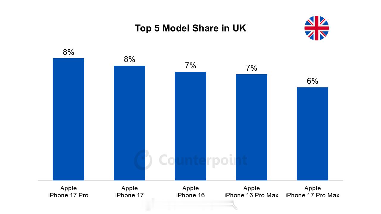 2025年9月份全球8个国家销售最好的Top5机型(source:Counterpoint)美国:iPhone17PM,iPhone17P,iPhone17,iPhone16,Galaxy A16 5G中国:iPhone17PM,iPhone17P,X70,iPhone17,iPhone16P印度:iPhone16,Redmi14C 5G,K13x 5G,Y29 5G,iPhone15德国:iPhone17,iPhone16,iPhone17PM,Galaxy A56,iPhone17P英国:iPhone17P,iPhone17,iPhone16,iPhone16PM,iPhone17PM法国:Galaxy S25,iPhone16P,iPhone16,iPhone16PM,GalaxyS25+韩国:GalaxyZ Flip7,GalaxyZ Fold7,iPhone17PM,iPhone17,iPhone17P日本:iPhone16e,iPhone16,iPhone17P,iPhone17,GalaxyA25