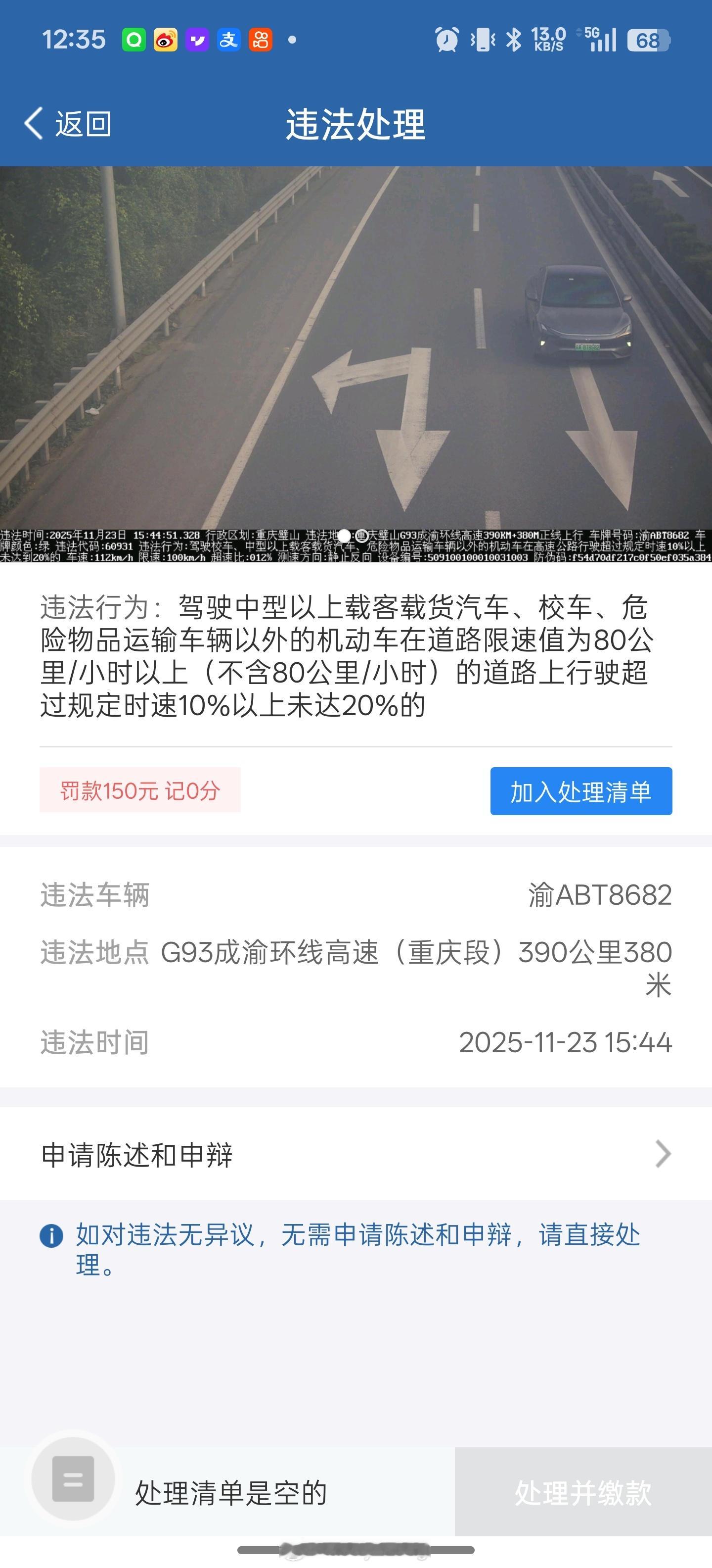 气死了,限速100开112被罚150元 脚法不够娴熟