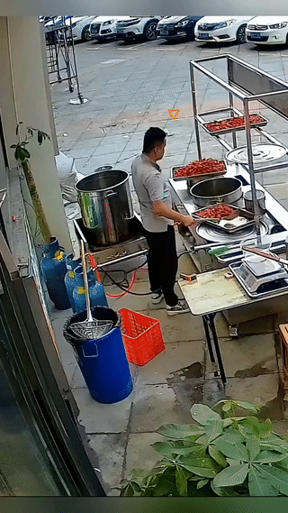 炸鸡店的液化气炉灶突然发生了剧烈爆燃! 男店主慌而不乱,沉着冷静应对。 最后终于