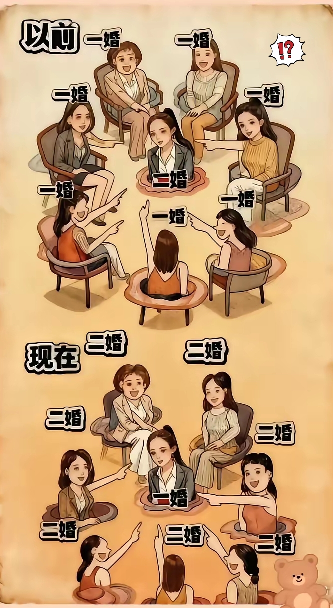 以前二婚是众矢之的,被一群一婚的人指指点点;现在一婚反倒成了圈子里的“稀有物种”,被二婚的人围观讨论!