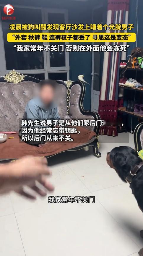 “还敢喝酒吗!”近日,辽宁朝阳,一男子半夜听到家里的狗一直叫,担心进贼了,他就出来查看情况,竟发现沙发上躺着一个全身赤裸的男人!男子将对方喊醒后,才知道他喝醉了酒,迷迷糊糊的就进了他家。男子:要是搁外面就冻死了! 朋友聚餐时,喝酒那是在所难免的事,适量的饮酒没有问题,但万一喝多了,最好希望周围都是熟人,这样还能照应点,不然容易出危险。 据媒体11月25日的报道,当晚3点钟,韩先生已经进入梦乡了,突然,狗狗在家里焦急的叫了起来,并不断扒拉韩先生的脸,最终把他给吵醒了,他就出来看看有啥事。 结果在沙发上,看到一个不穿衣服、睡着的陌生男人,韩先生以为对方是变态,小心翼翼将他喊起来,由于狗狗在一边看着,韩先生倒也不是很害怕。 经过了解才知道,男子在朋友家喝了酒,随后就没有了印象,也不知道自己是怎么进来的。 原来,韩先生由于经常忘记带钥匙,所以家里后后门一直不锁,因为这边是郊区的缘故,他也不担心有人闯进来,没想到,这名醉酒男阴差阳错的走了进来。 不过也万幸他进到了自己家,不然当晚零下十多度,男子衣衫单薄,要是在外面肯定就被冻死了。 网友看后表示,喝醉酒不可怕,可怕的是有人帮你回忆,所以为了个人的安全着想,在外面喝酒时一定要控制好量,切莫贪杯。 信息来源:《“连裤衩子都丢了”!辽宁朝阳的韩先生在卧室睡觉时被狗吵醒,打开门一看,客厅沙发上竟然睡着一个一丝不挂的男子。“外面零下十几度,不进我屋不穿衣服在外面会冻死”》AHTV第一时间