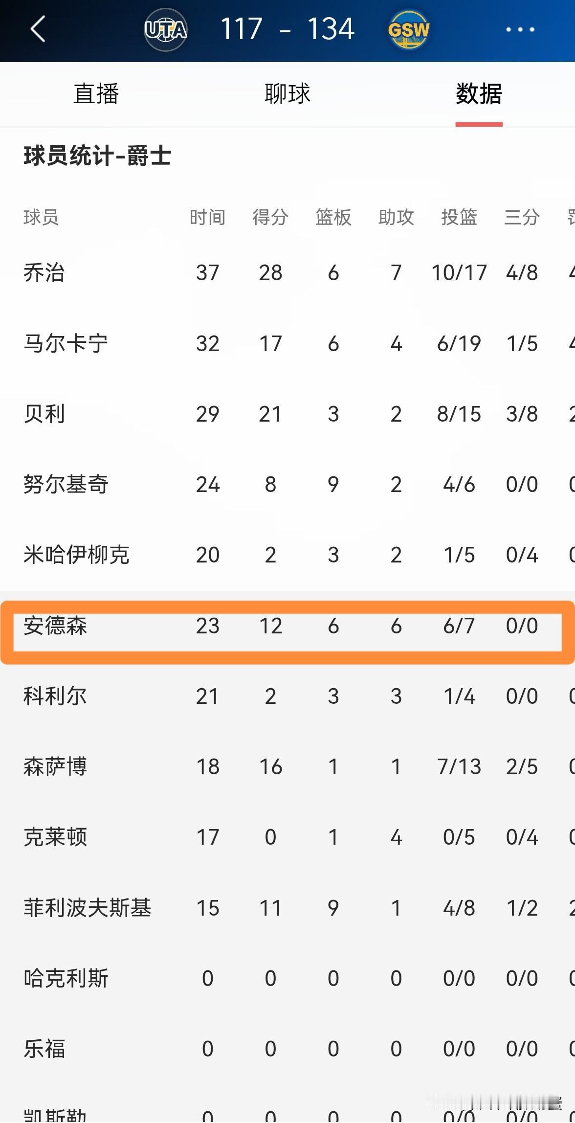 爵士大将李凯尔真是特别不懂事!虽然今天爵士在客场以117:134输给了勇士但是李凯尔面对旧主却打出了久违的精彩表现。全场比赛下来,李凯尔替补出战23分钟,投篮7中6非常高效的砍下12分6篮板6助攻1抢断,他的场上正负值为-1。 说实话,李凯尔真是特别不懂事,他怎么能在面对旧主的时候突然爆发呢。