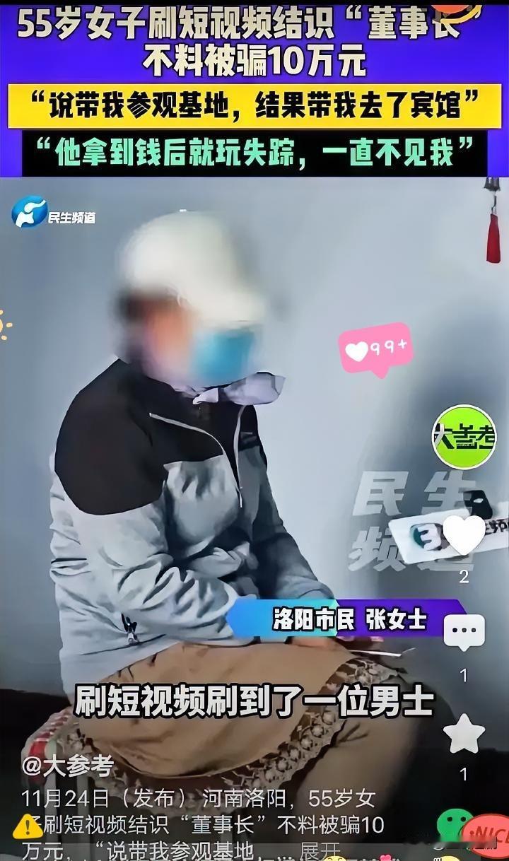 55岁阿姨刷短视频遇“董事长”,被骗到宾馆后转520、送300买短袖,最后10万1千块全被卷走,这骗局真的防不胜防!骗子穿名牌、说甜言蜜语,还拿假购销合同画饼,专挑渴望陪伴的中老年人下手,简直缺德到骨子里! 别骂阿姨傻,她不是笨,是太想被重视!平时舍不得买几百块衣服,却愿意为“真诚”的关怀花钱,这份真心反倒成了骗子拿捏她的软肋。很多人觉得诈骗离自己远,其实骗子早就摸透了人性弱点,用“爱情+致富”的双重诱饵,让你一步步放下戒心。 真正的可怕不是骗局多高明,而是我们总对“完美关系”抱有幻想。网络交友里的甜言蜜语再动听,没有真实身份验证都是空谈,涉及金钱一定要多留个心眼。法律不会放过骗子,但我们更要学会保护自己,别让真心给了豺狼。 提醒身边的中老年人,遇到陌生人画大饼、提借钱,先打个问号!你们见过更离谱的骗局吗?评论区分享出来避坑!警醒骗局 中老年网恋骗局 老年人情感骗局