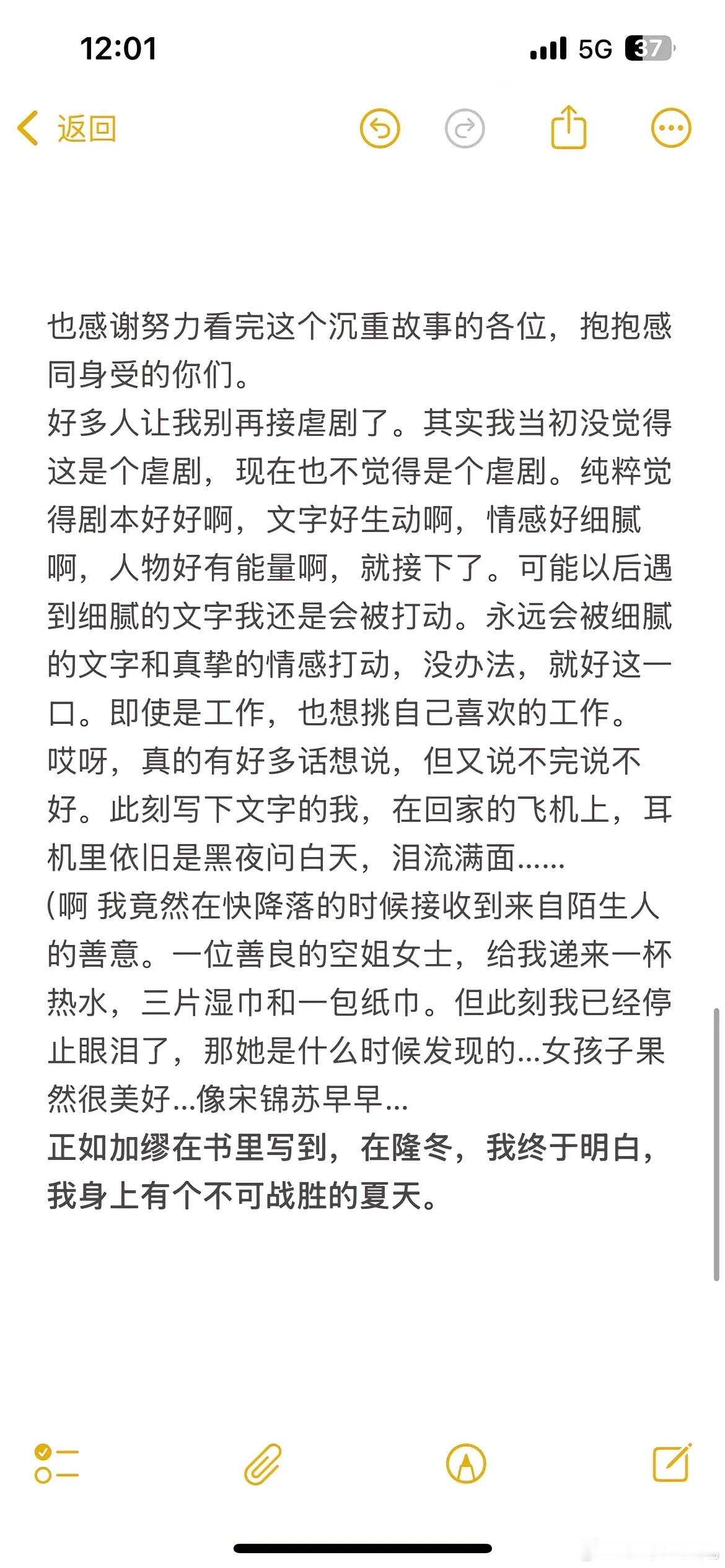谭盐盐写了长文来分享自己对《城南的花开了你还走吗》的理解和喜欢,王奕然拍的时候好像也有一场哭到崩溃,这部剧他俩真是很走心地演了😢