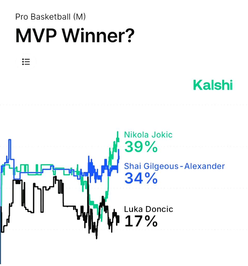 美媒列出本赛季三大MVP的趋势图。 约基奇是绿色线,现在是最大热门。 亚历山