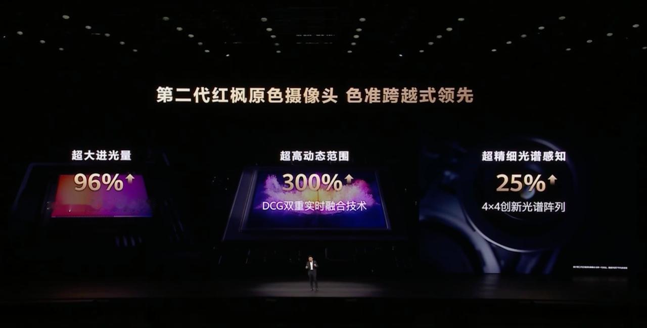 华为Mate80系列,红枫原色摄像头来到了第二代,色彩准确度提升了43%。 Mate80标准版和Pro影像是收着的,没有全上RYYB传感器。华为发布会
