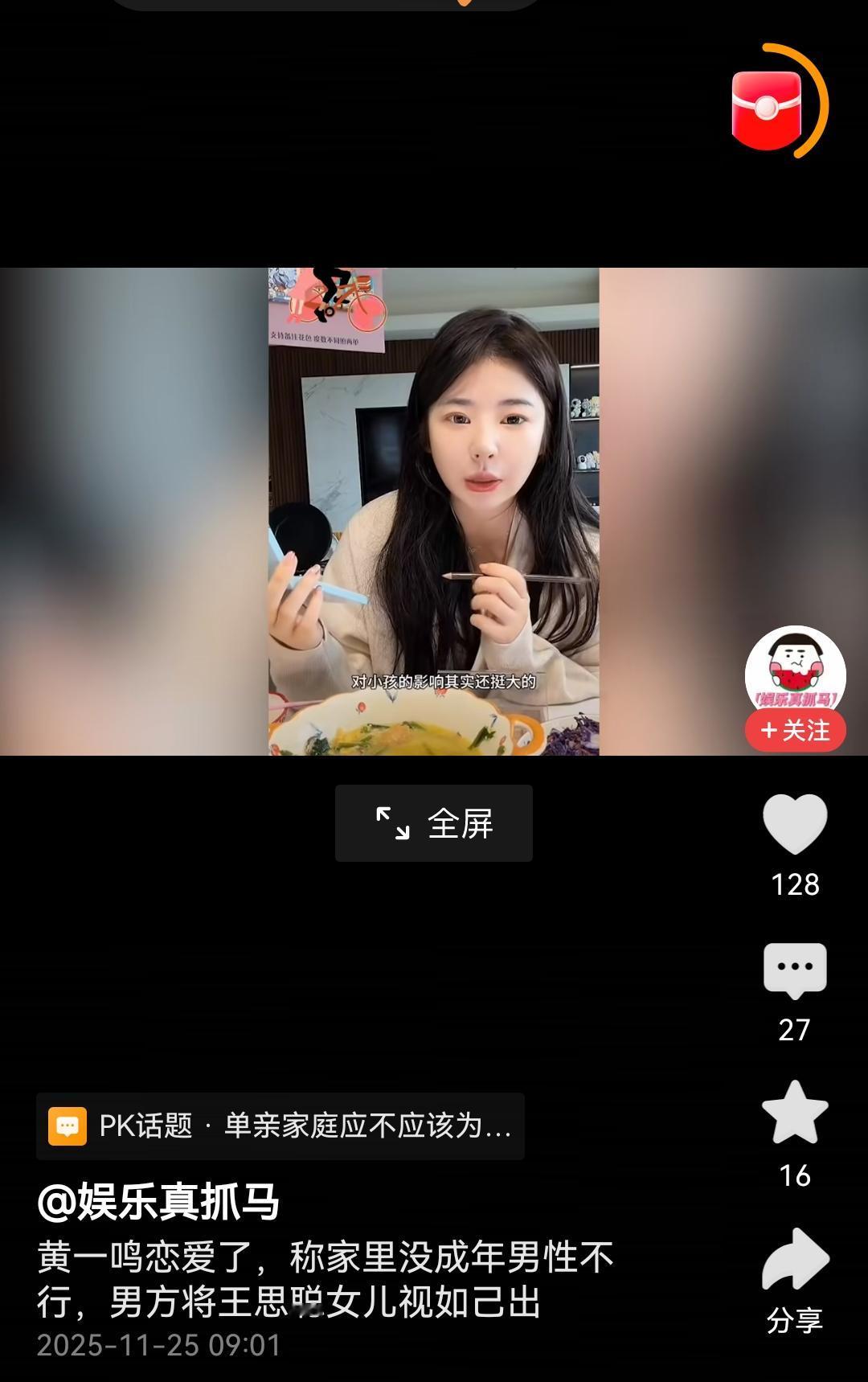 黄一鸣自爆恋爱了,称对方对孩子视如己出。看样子是想通了,不打算等思聪浪子回头了。
