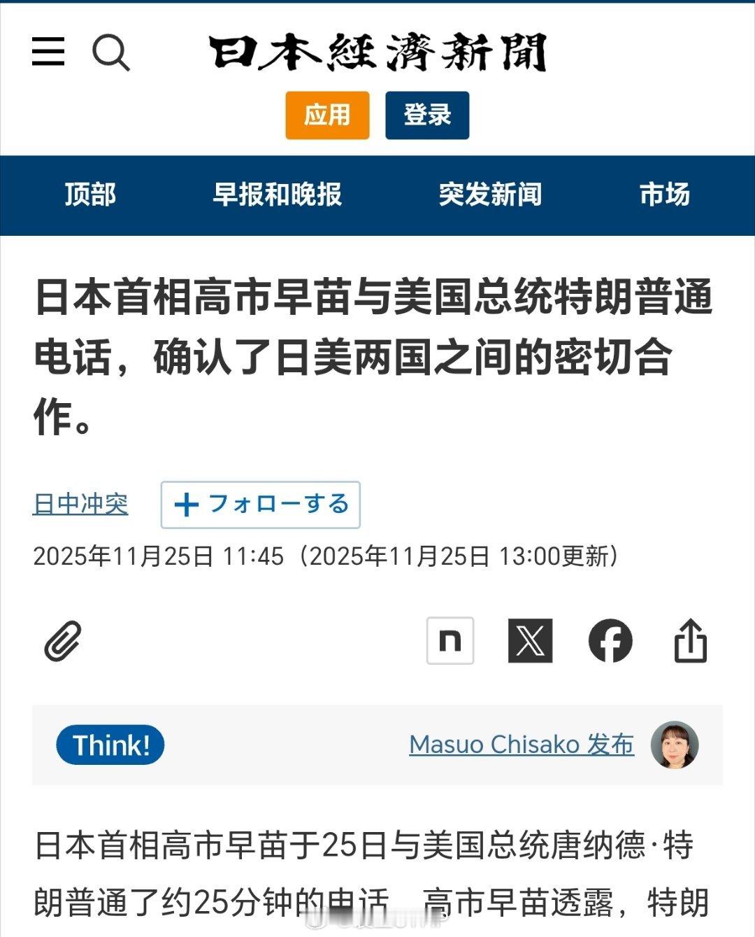 日本九州大学比较社会文化学府教授益尾知佐子声称,高市早苗与特朗普通话约25分钟。