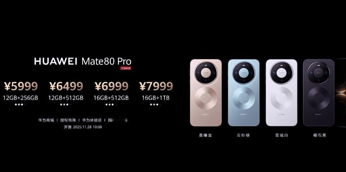 Mate80系列价格来了:Mate80,12GB+256GB:4699元起Mate80 Pro,12GB+256GB:5999元起Mate80 Pro Max,16GB+512GB:7999元起非凡大师系列:11999元起这个价格大家感觉如何