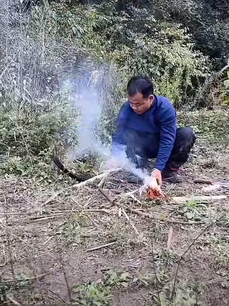决赛第二天185的苗王,成了全场的首富,这么多吃的,他在庇护所躺10天都没问题了。 苗王腿短跑的快,几个人都看好的庇护所,他最先抢到,稳坐大堂经理。他的庇护所在山口,山上的葛根叶子都不见了,山口的叶子还是绿的。别人都挖不到山药,他也挖到了,别人挖不到葛根,他也挖到了。 下午还成功把火生起来,目前很多选手的火都还没生起来。就连昨天1分钟搞定钻木取火的刀疤哥今天弄了很久,也没生起来,连他自己都觉得有问题。