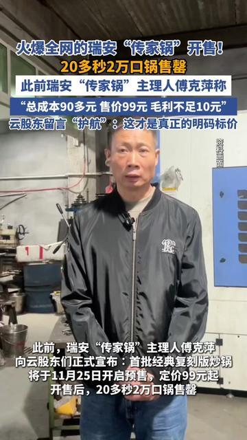 20秒抢光2万口!这口叫“传家”的锅,凭啥让年轻人蹲点疯抢? 我家厨房那口妈用了20年的铸铁锅,锅底还留着我小学煮糊粥的印子,锅柄缠的纱布是我高中怕她烫到手绑的,她总说“这锅煮的饭,比你点的外卖香十倍”。 现在年轻人一年换3个网红锅,可这“传家锅”偏要“用一辈子、传三代”,我们抢的哪是锅啊?是想等孩子长大时,能指着锅说“这是你爸妈当年的传家锅,煮过你最爱的红烧肉”。 原来最打动人的从不是什么高级材质,恰恰是“传家”二字,把家的温度变成了能摸得着的实物。 你家有没有这样比人还老的传家物?是奶奶的银簪?还是爸爸的旧手表? 大家怎么看?