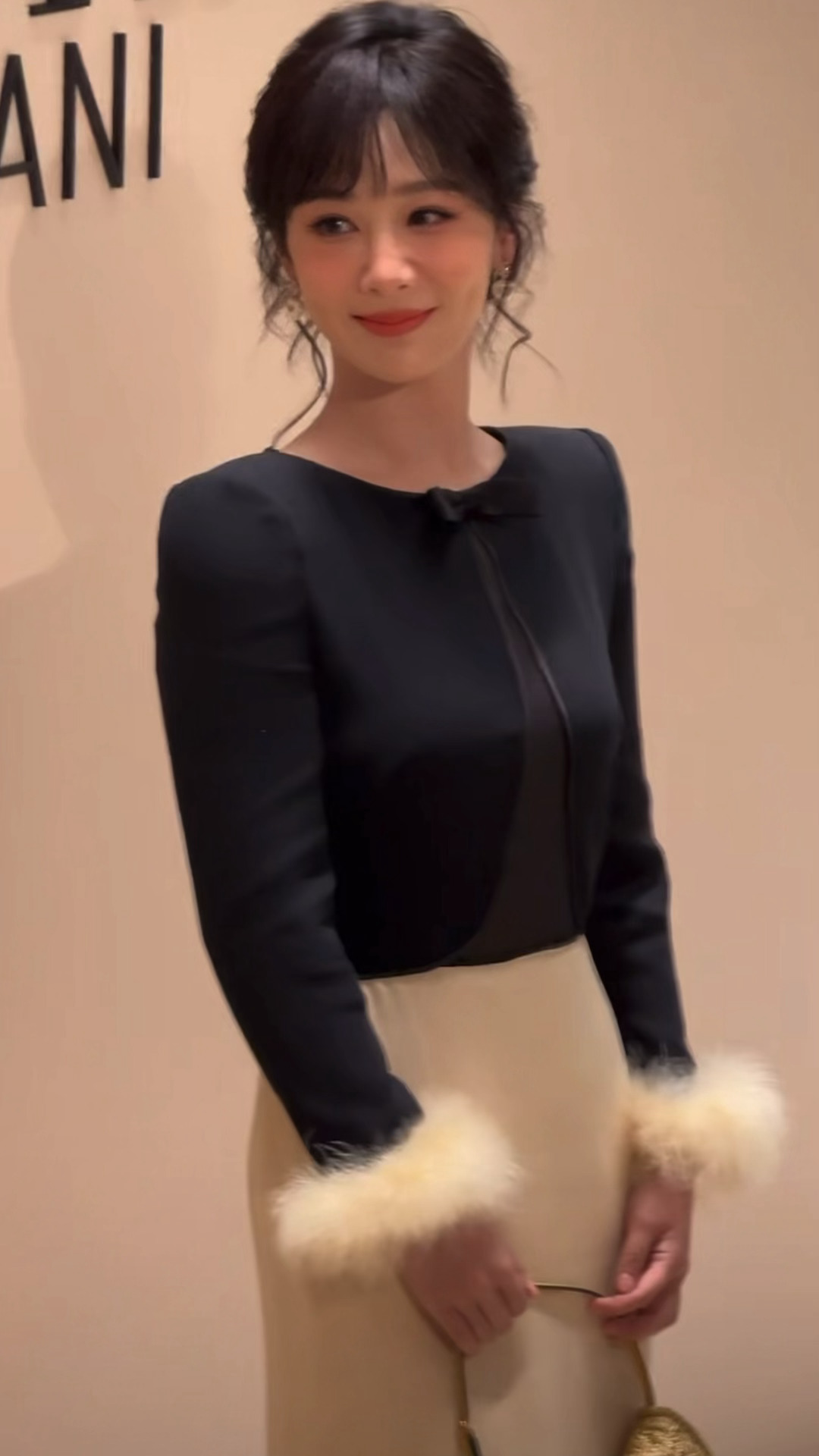 刘亦菲把死亡玫粉穿出了定制款的感觉,这种颜色普通人穿上分分钟黑三度,她居然能穿出