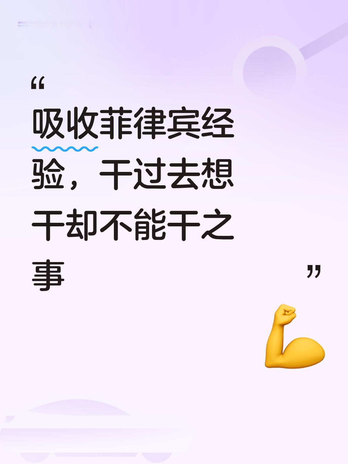 我们要吸收菲律宾瞎胡闹带来的经验,如此才能放开手脚,去做过去想干却因种种限制而不能干的事 ;干成过去不能干的事!
