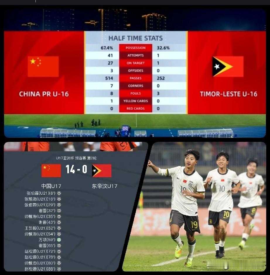U16国足14:0东帝汶,我却高兴不起来! 有些媒体,伪球迷开启无限捧杀模式,说什么U16国足已经具备亚洲一流的水平,特别是某些自媒体狂吹,像张伯霖、谢晋、帅惟浩和赵松源先后上演“帽子戏法”球员,又是中国足坛的C罗,梅西,姆巴佩,哈兰德,说他们已经具备进入成年队的实力, 可以留洋了! 感觉这支U16国足可以在未来10年统治亚洲足坛了,不知真像的球迷差点信以为真了! 当初U17国足亚洲杯预选赛,2:0巴林,6:0不丹,9:0马尔代夫,全网觉得中国足球从此站起来了,结果小组赛1:2沙特,1:2乌兹别克斯坦…… U16国足的小将们确实比U17国足强不少,但绝对没有到达亚洲一流的水平,最多也就2流的水平!