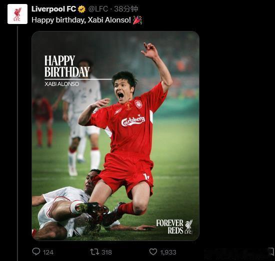 利物浦官推祝福阿隆索和斯皮灵生日快乐
