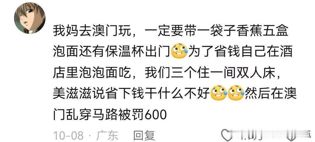 不是,你去澳门自己带香蕉泡面?你这是去为博彩事业添砖加瓦的吧! 去澳门就要去吃本地的餐厅啊,吃特色葡萄牙风味,吃各种美食哇!