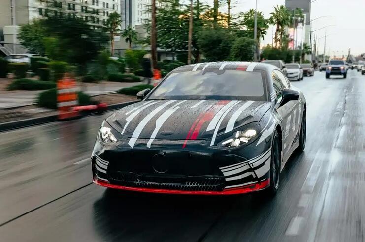 纯电版梅赛德斯AMG GT四门轿跑车低伪实车亮相 最大功率或超1000马力 近日,梅赛德斯-AMG在F1拉斯维加斯大奖赛上带来了纯电版全新梅赛德斯-AMG GT四门轿跑车低伪实车。新车基于AMG.EA平台打造,设计灵感源自AMG GT XX概念车,并将使用轴向磁通电机,预计最大功率超过1000马力。 据悉,新车预计在2026年发布。 减少了大量的伪装后,可以隐约看到车辆的基本设计。大灯组造型采用了一个上体的样式,内部配备了最新的三叉星辉LED日间行车灯组。前机舱盖造型宽大且平整,符合纯电动车型的低风阻的概念。前包围采用了经典的AMG大嘴造型,预计也会搭配纵向布局直瀑式格栅设计,两侧则是外扩样式的纵向布局通风开口,引导气流划过车头。 整体造型与AMG GT XX非常类似,拥有顺滑的车顶线条以及四门设计,溜背式造型也更加符合低风阻设计,再加上隐藏式的车门把手和平滑的车门面板,整体造型没有太过于凸显AMG的暴力线条。 采用溜背式设计,是一款中大型GT轿跑车。 动力将会搭载轴向磁通电机,单颗就可以达到400马力左右,AMG GT XX上搭载了3颗电机,预计量产版车型也将拥有3颗电机,布局为前一后二的四驱系统,最大功率预计在800-1000马力左右,电池组也将采用新型的圆柱形电池,续航里程预计超过700公里。 点个关注吧!汽节车社,车圈热点资讯每日一扫清!【来自懂车帝车友圈】