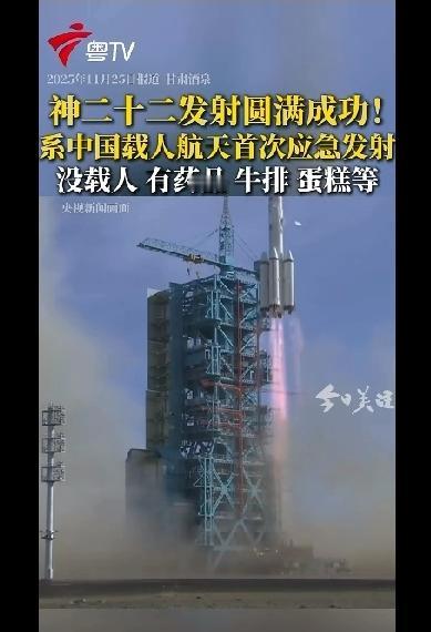 快讯!神舟二十二号发射圆满完成,首次使用激光雷达对接 据中国航天发布的消息,11月25日(今天)12时11分,搭载二十二号神舟飞船与长征火箭分离,并成功进入预定轨道。据悉,这是中国载人航天工程第一次接受应急发射任务。目前神舟二十二号在无人状态下,满载货物前往中国空间站,携带航天员需用药品食品,新鲜水果,衣物及航天设备。 这次与以前最大不同的是空间站与二十二号飞船对接方式,没有载人,首次采用激光雷达对接。